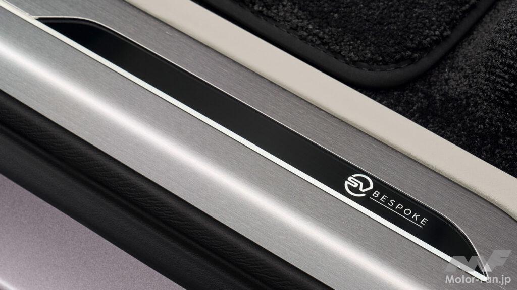 スモークがかったブルーグレイのビスポーク・ブルーグレイサテンを採用し、夕暮れ時の柔らかで温かみのある空の色を表現。光が当たるとゴールドの輝きを放ち、ビスポークカラーならではの1台に仕上げられた。インテリアの素材はノンレザーのウルトラファブリックを使用し、フロントシートがライトクラウド、リヤシートがシンダーグレイのデュオトーンとなっている。ムーンライトクロームとブラックセラミックコントロールが、ダークなインテリアテーマをさらに引き立てている。