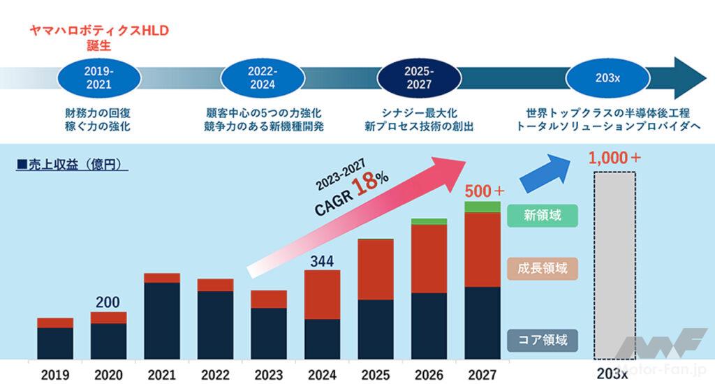 YRCは事業成長と体制進化のためのさまざまな施策により、今中期最終年度となる2027年に500億円以上、2030年代初めには1000億円の売上収益を目指す。