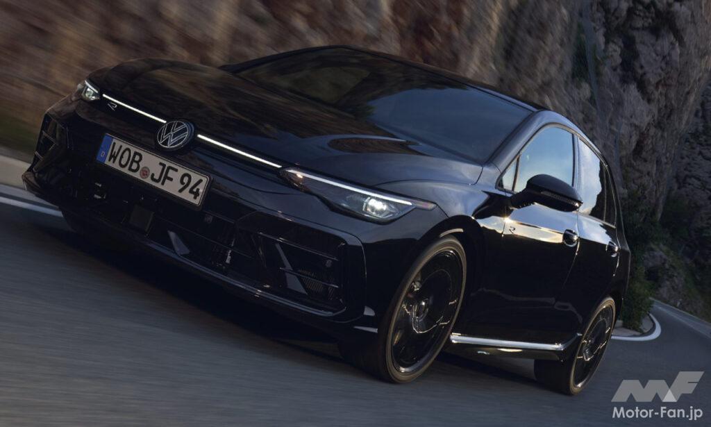 ゴルフRブラックエディション)は、ブラックカラー仕上げの軽量“ヴァルメナウ”鍛造19インチホイールやブレーキキャリパーを始め、スタイリングの随所にブラックカラーのアクセントを採用。ゴルフRの精悍でスポーティな印象がさらに高められている。