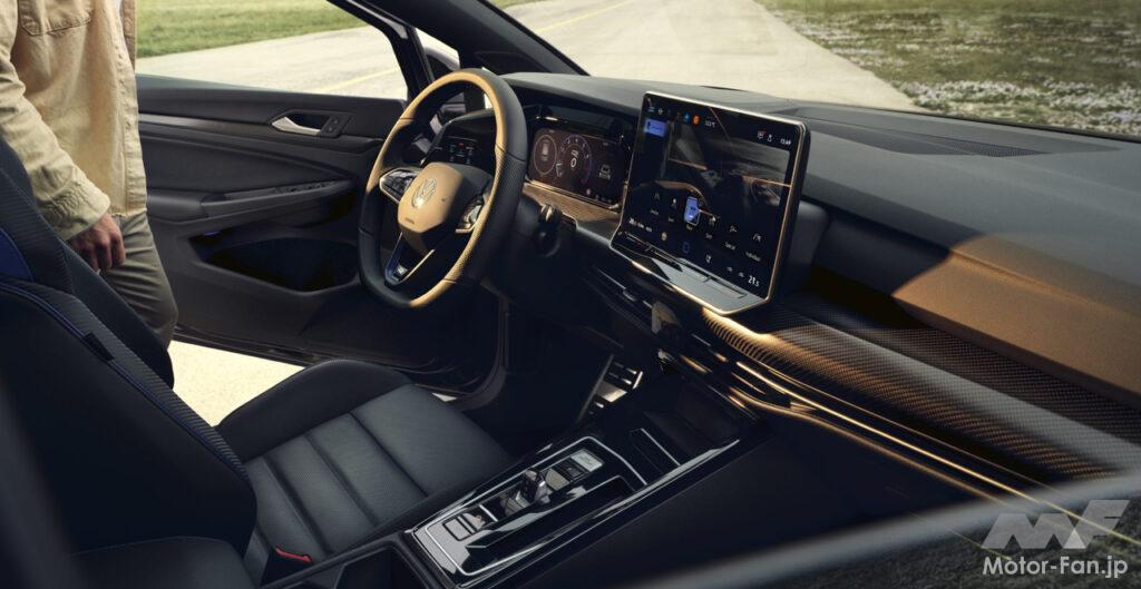 ステーションワゴンボディのゴルフRヴァリアントは、エクステリア全体を引き締めるブラックの軽量“ヴァルメナウ”鍛造ホイールやブラックルーフレールに加え、レーシーなインテリアを彩るリアルカーボンデコラティブパネルを装着。ゴルフRヴァリアントならではのスポーツワゴンの稀有な存在感をより一層際立たせている。