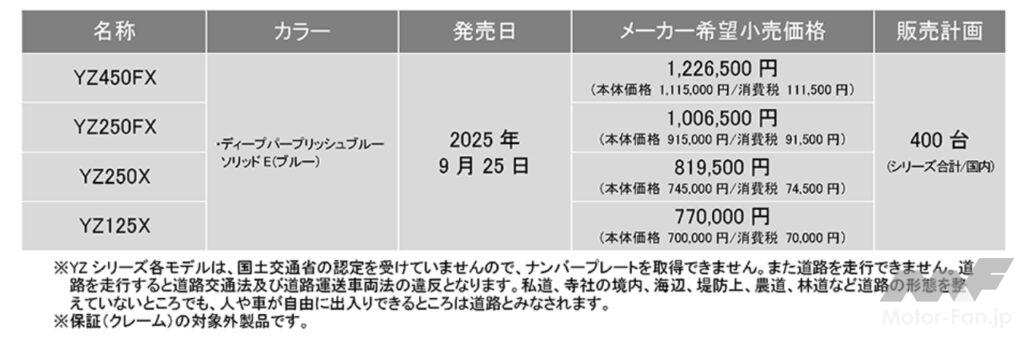 モトクロス競技用 「YZシリーズ」 は期間限定でヤマハ発動機創立70周年記念モデルも発売
