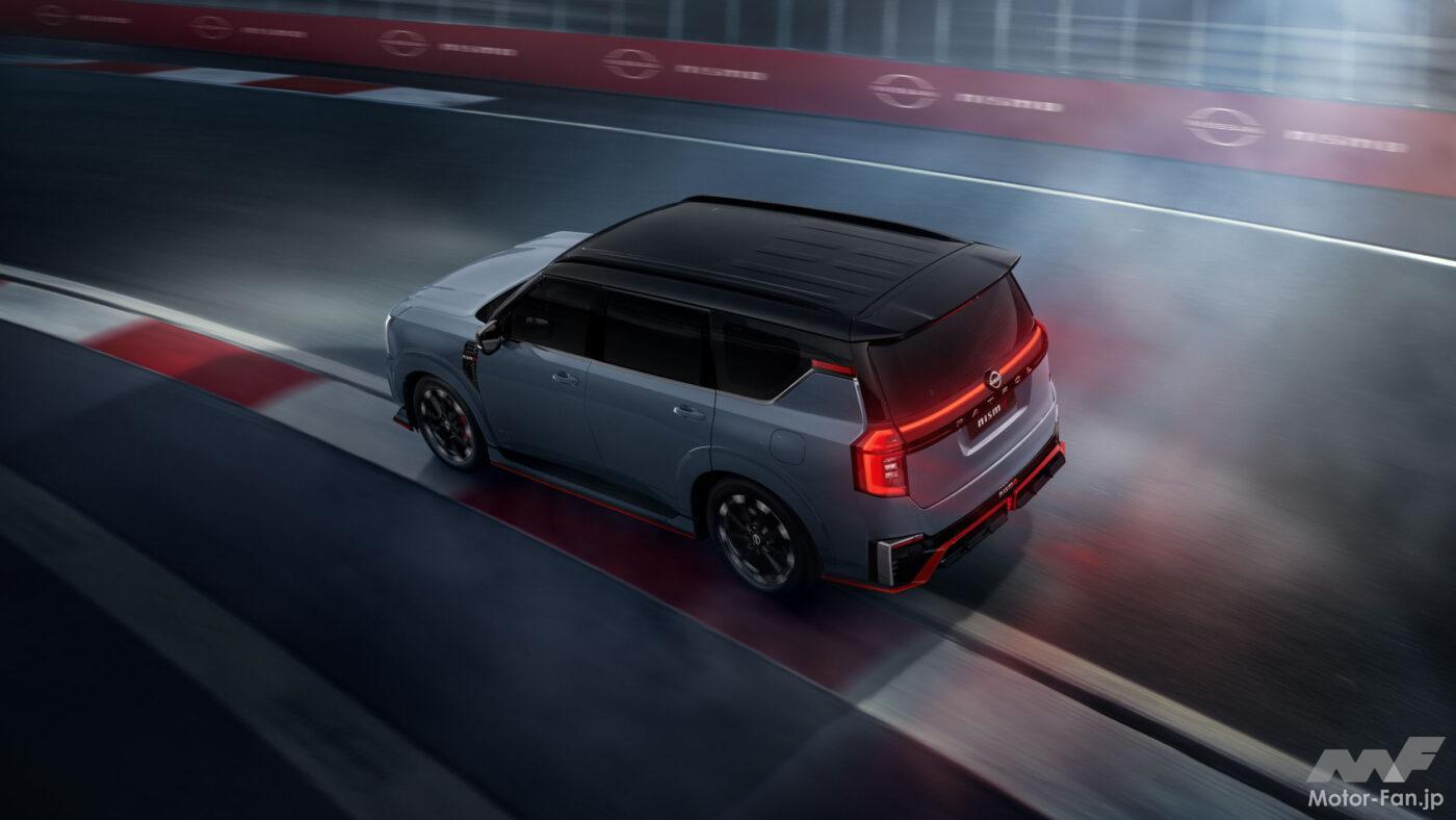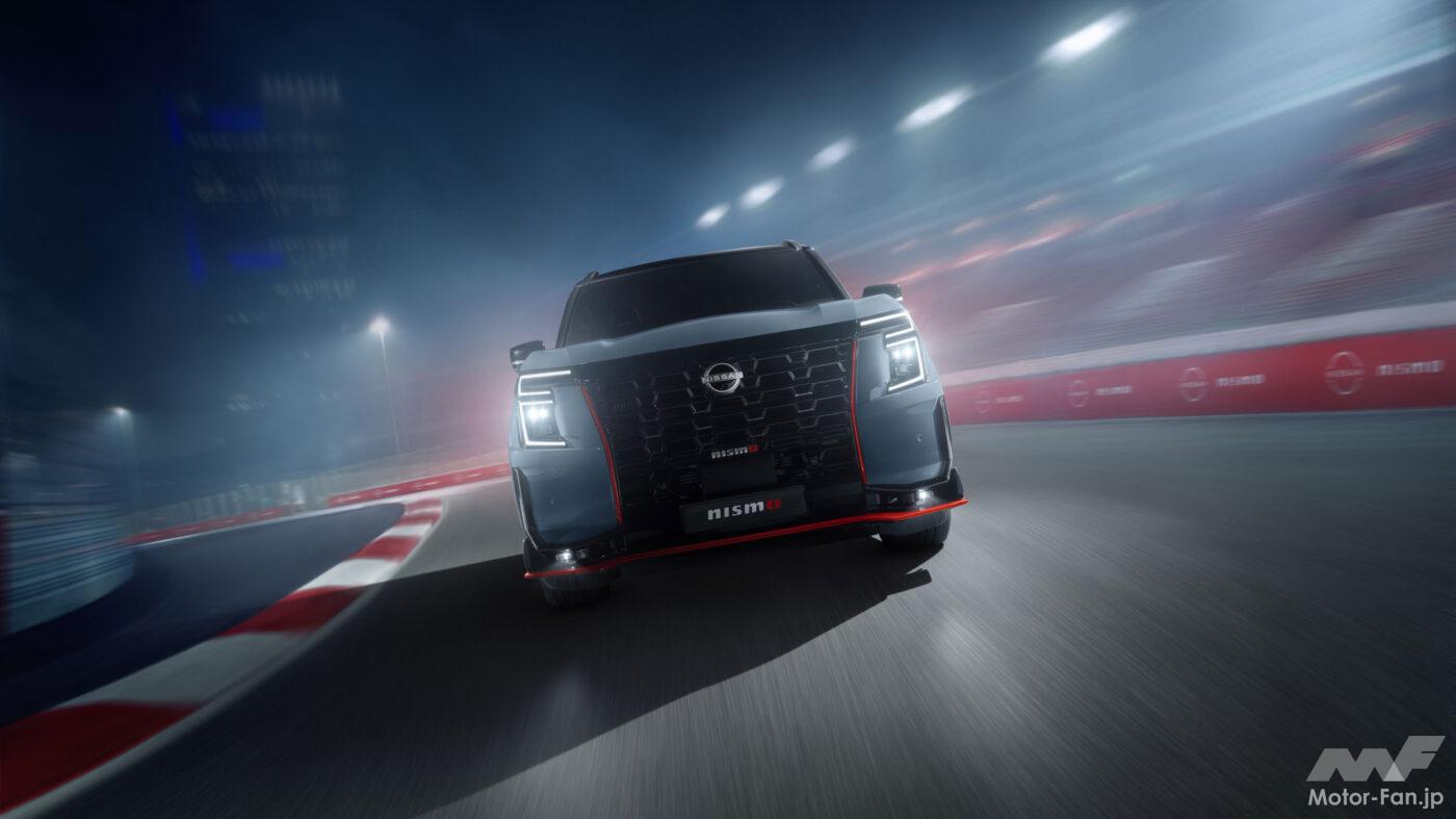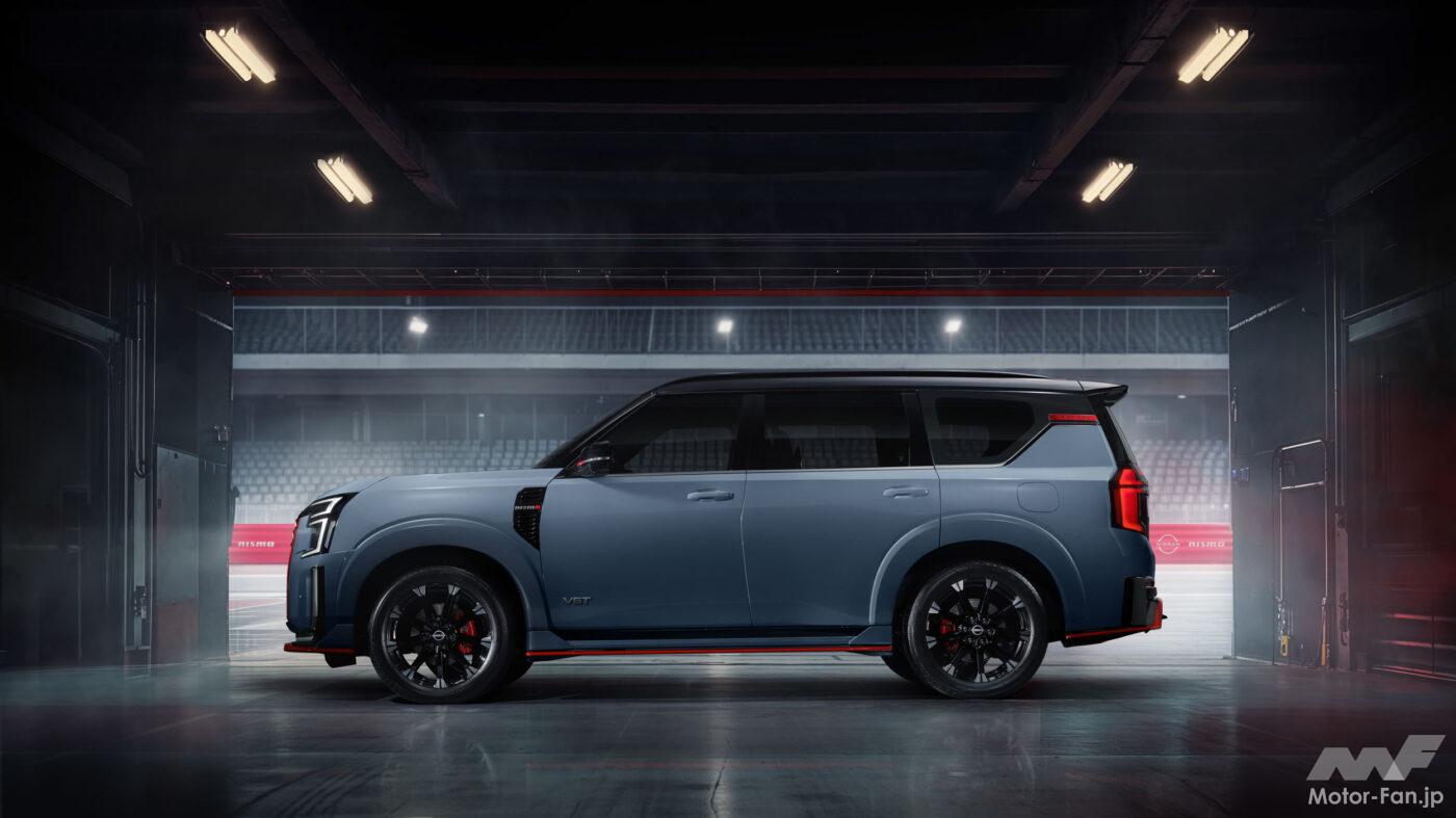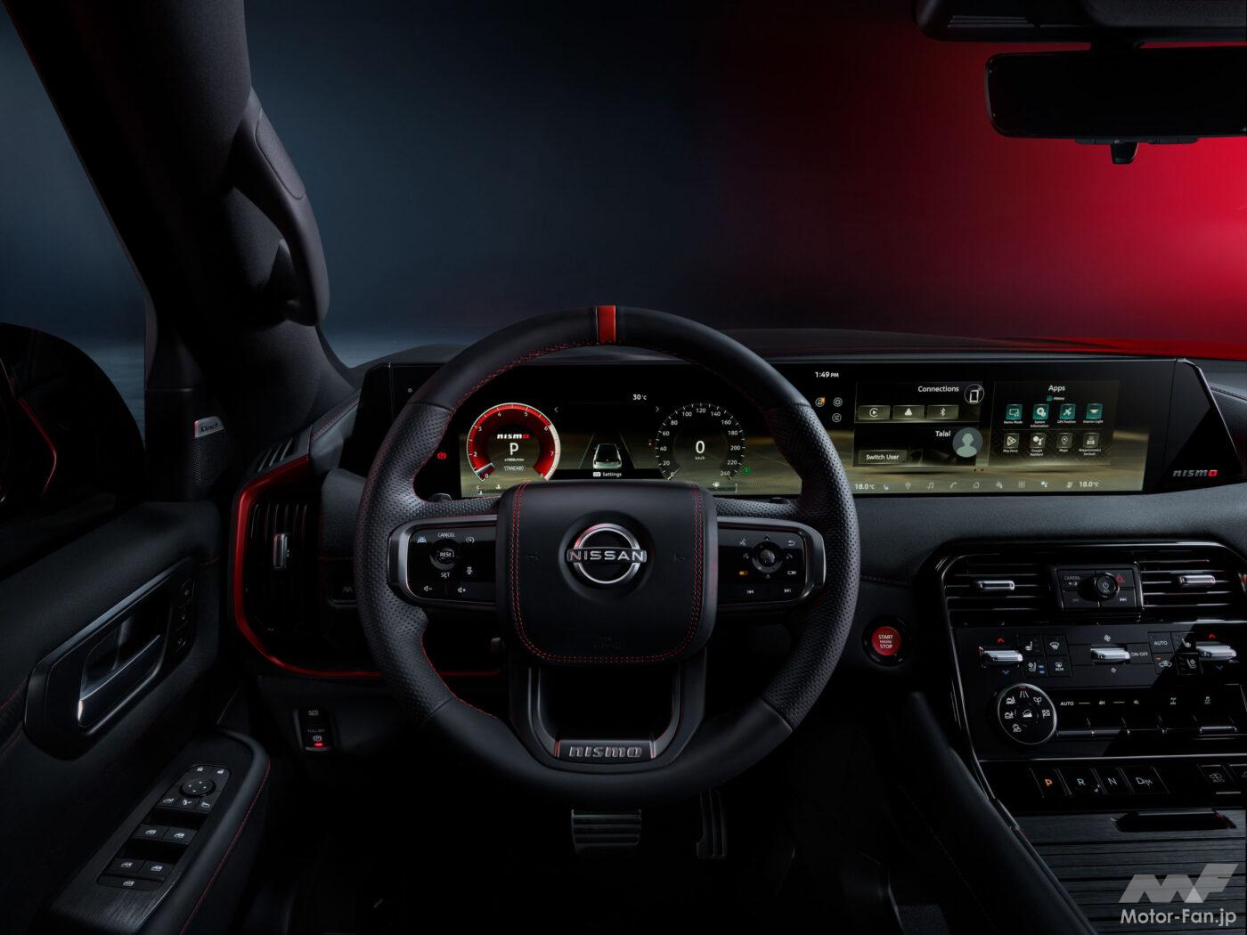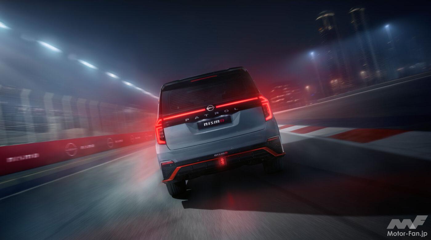 新型「パトロールNISMO」に搭載されるVR35DDTTエンジンは、NISMO専用チューニングにより最高出力495HP、最大トルク700Nmを発生。NISMO専用の赤いエンジンカバーとスペシャルメタルプレートが装着され、エンジンの高出力化に合わせてチューニングされた9速ATとパドルシフトが搭載される。