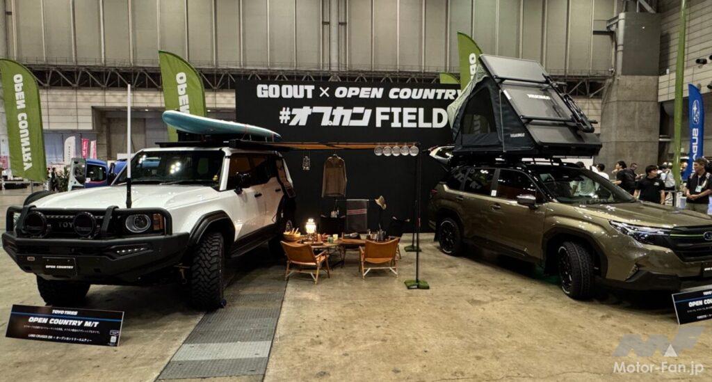展示された車両はいずれもOPEN COUNTRYシリーズの製品を装着しており、それぞれのタイヤ特性が実際のユースケースとどのように結びついているかを体感的に理解できる構成が取られていた。