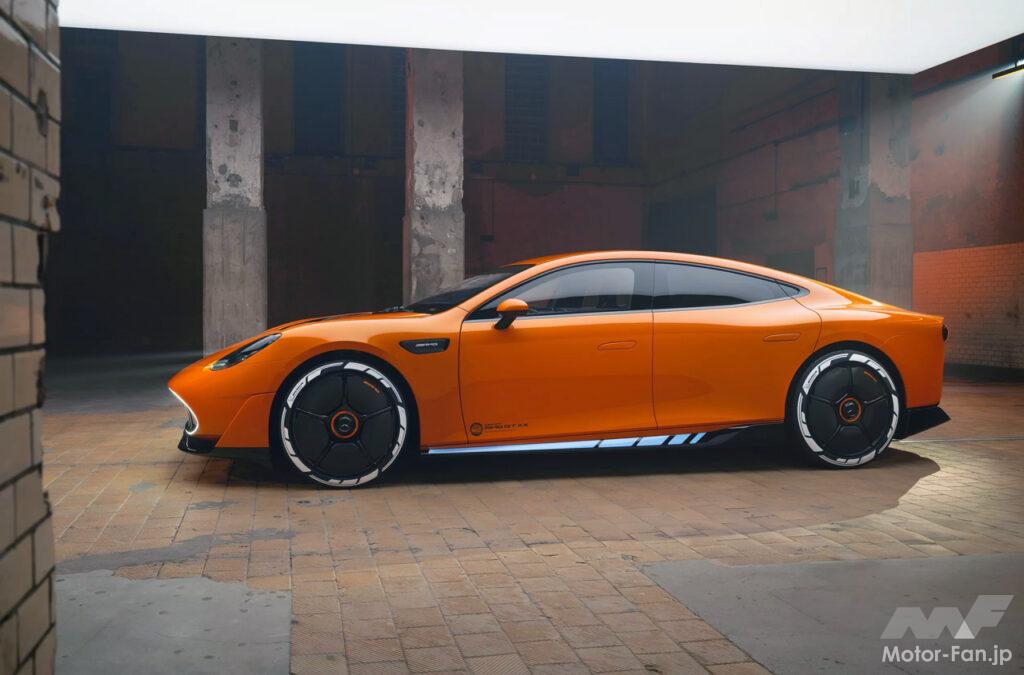 側面では、フラッシュマウントドアハンドルを装備。ルーフラインと融合する流線型のウインドウを採用している。これにより、コンパクトなキャビンが実現する。また、スポーティなサイドスカートには「発光ペイントセグメント」が採用されており、「交流電流に反応して発光する」仕組みのようだ。