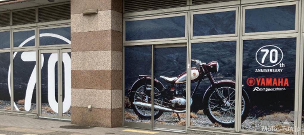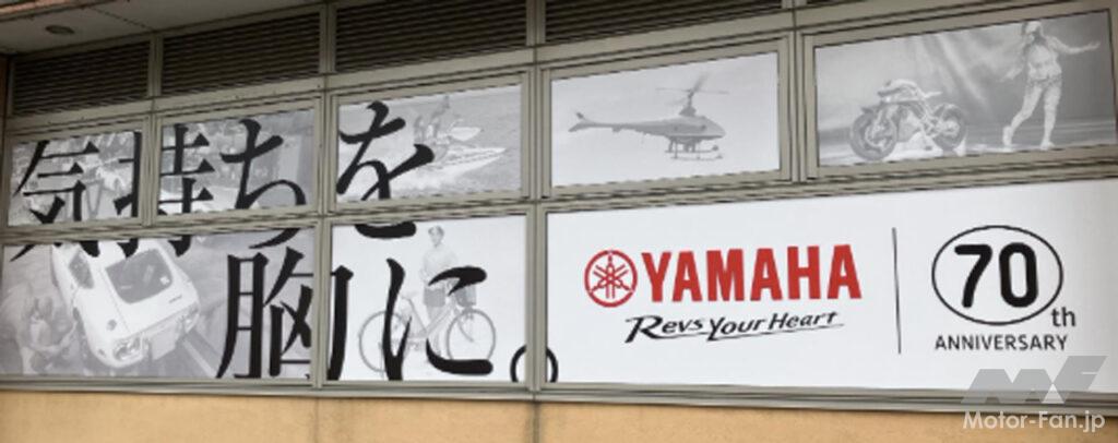 「ヤマハ発動機が70年の歴史を迎えるにあたり、今一度、原点を見つめることが重要だと考えました。創業の年に過酷なレースに挑戦し、見事優勝を果たしたことが、ヤマハ発動機の挑戦し続ける企業風土を運命づけたと感じたからです。そのため、今回のガラス面装飾はそのレースで日本一を勝ち取った『YA-1』をリアルに表現し、創立70周年のロゴは『YA-1』のレーサーが背負っていたゼッケンをモチーフに作成しました。磐田駅前を歩く人があたかも『YA-1』の世界に入り込むような感覚を味わっていただけると幸いです」