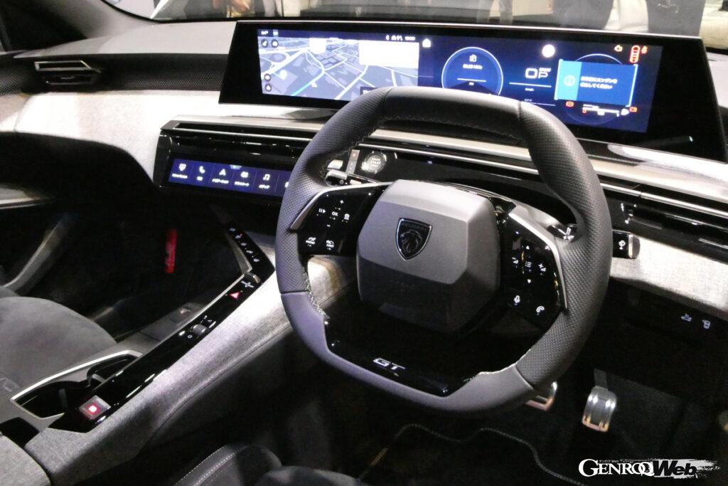 新型3008のインテリアの最大のトピックは、新設計の「パノラミックiコクピット」だ。全グレード標準で装備される21インチ大型カーブドディスプレイが視認性と操作性を両立するという。10個のショートカットを設定できる「iトグル」も装備され、操作系も大幅に進化した。さらにGTアルカンタラパッケージでは、アルカンタラ製のスポーティかつ快適なシートを採用。さらに、プジョー初となるアダプティブボルスター機能を搭載し、走行シーンに応じたホールド感の調整が可能だという。