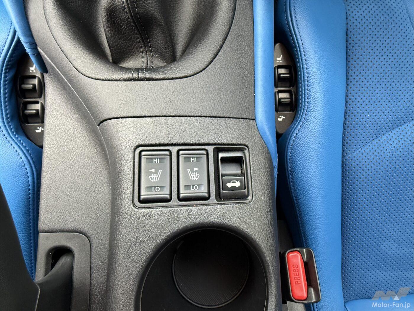 シフトレバー左上には「Sモード」ボタンがあって、これを押すと、シンクロレブコントロールが作動する。要するにエンジンの回転合わせを自動でしてくれる機能だ。これをONにしておくとちょっと運転が上手になった気にさせてくれるが、OFFでもまったく不自由はない(から8割方OFFにしていた)。
