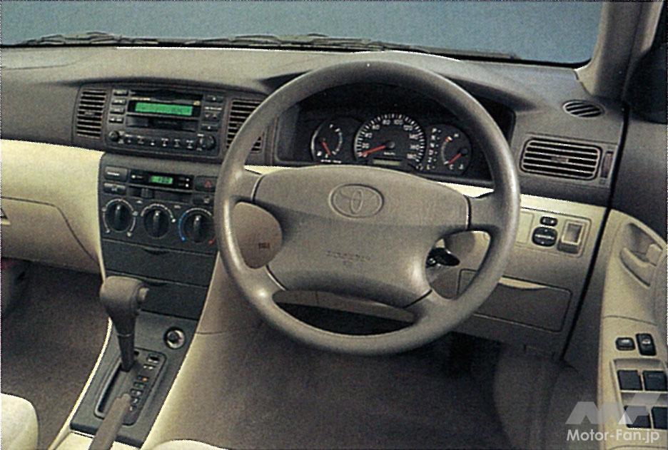 カローラでいうと、最廉価モデルの「1300 X」でもみすぼらしさが消え、全機種パワーウインドウやパワーステアリング、14インチタイヤ、ABS、デュアルエアバッグなどの全機種標準化を果たしたのは、スタイル、パッケージで大変革を起こした、2000年のニューセンチュリーバリューの9代めのときだ(営業用途の「1300 X アシスタパッケージ」を除く)。