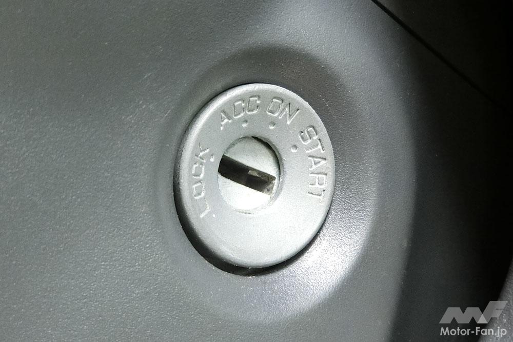 キー時代は手動によるシリンダー操作でハンドルロックがかかるようになっていたが、ボタン式だとこれがモーター駆動の電動式になる。