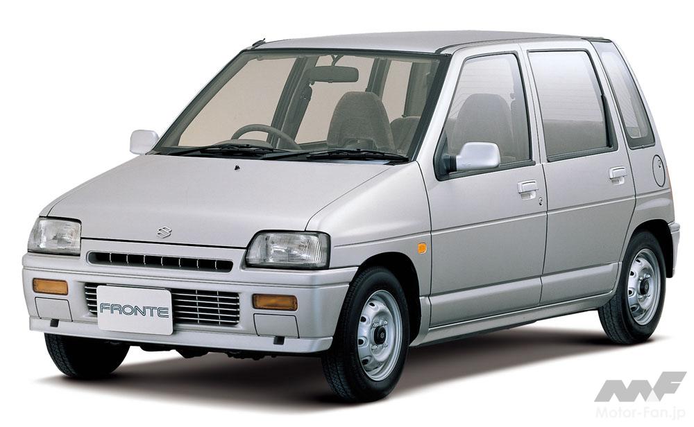 そのアルトが1989年の税制改革による物品税の廃止で乗用主体になるまでの間、純乗用軽だったフロンテも併記してある。