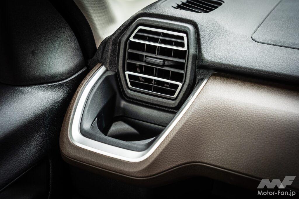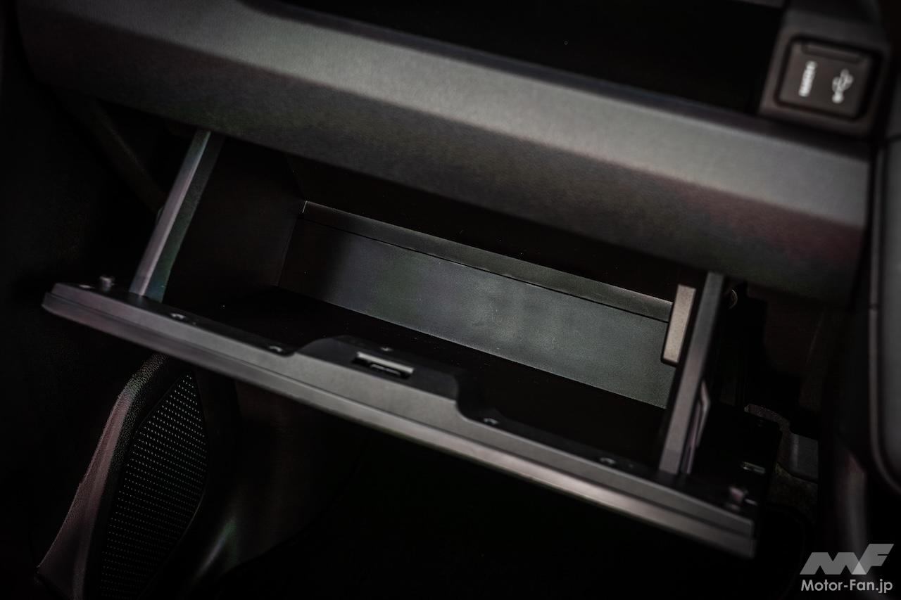 「車両感覚をつかむためにも水平の軸は大事」とデザイナー氏。サブウインドウ越しに外が見えることもあり、視界は良好。六角形の空調吹き出し口に向かうインパネの隆起が秀逸で、昔アニメで見たロボットや宇宙空間を移動するファイターのコックピットを想起させる。このあたり、新人類世代に響くのではないだろうか。