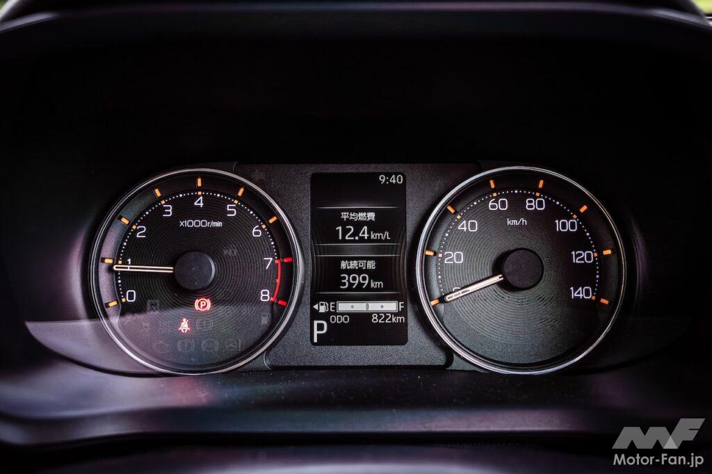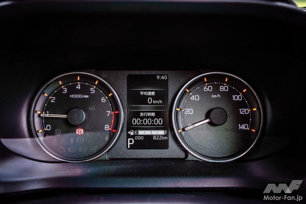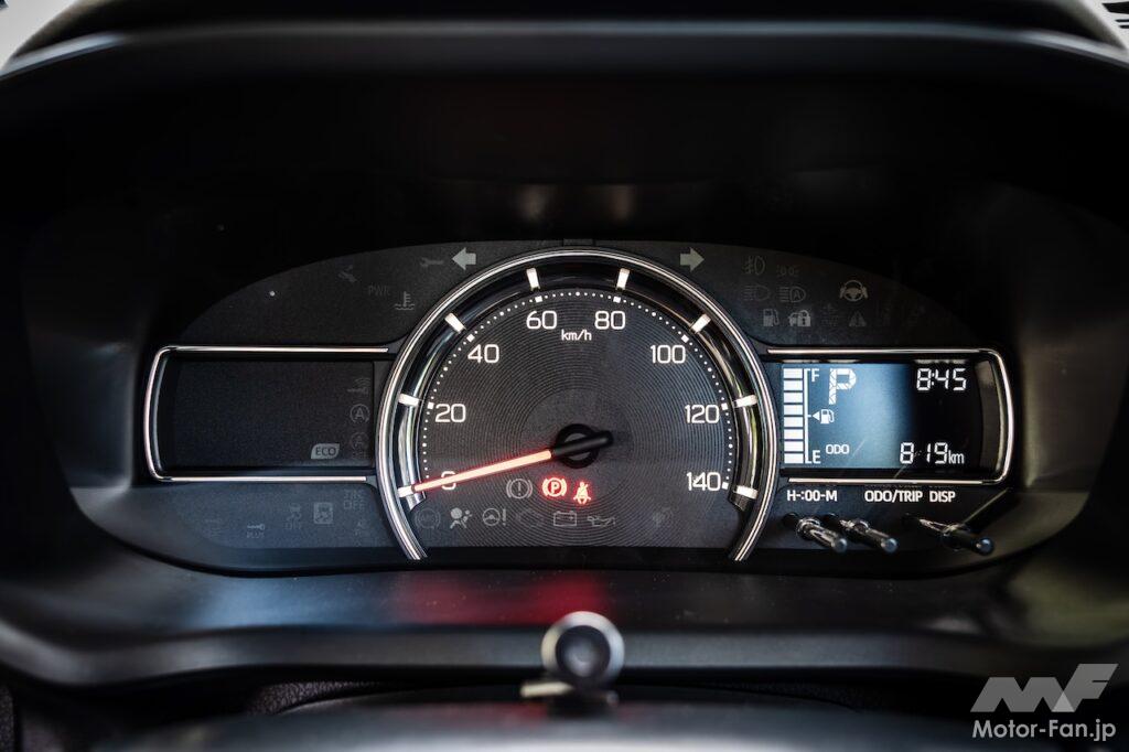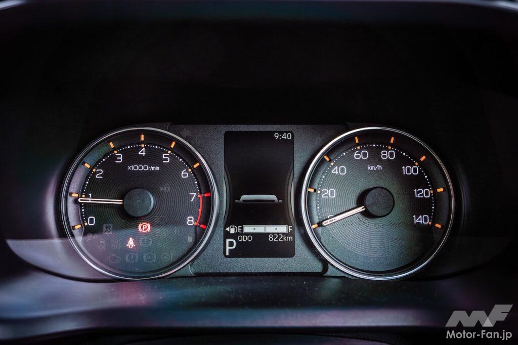 Gは機能をプラスした上級グレードの位置付けで、2WDの価格は171万6000円。パーキングブレーキは足踏み式ではなく電動になり、LEDヘッドランプはオートレベリング付きになり、マルチインフォメーションディスプレイがカラーになるのに加えタコメーターが付き、フルホイールキャップではなくアルミホイールになる。