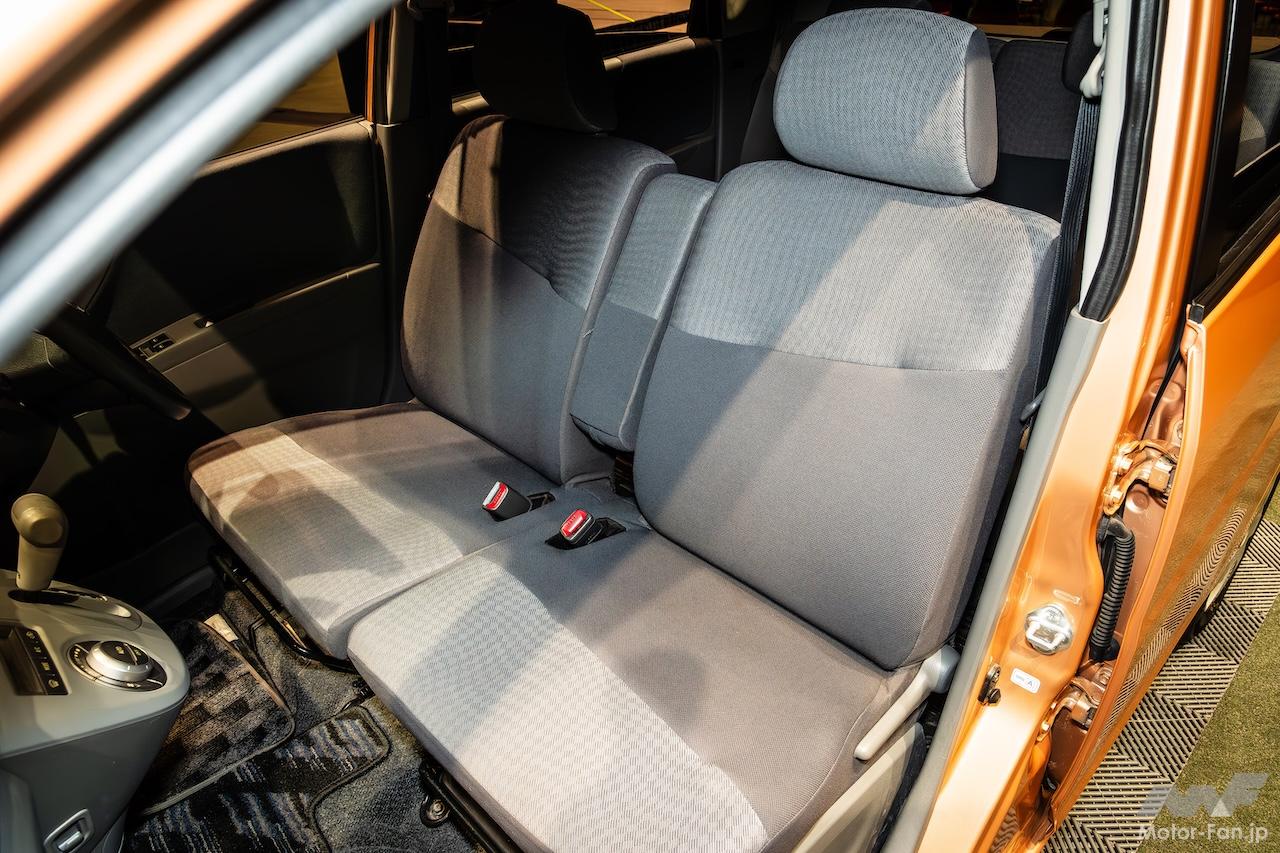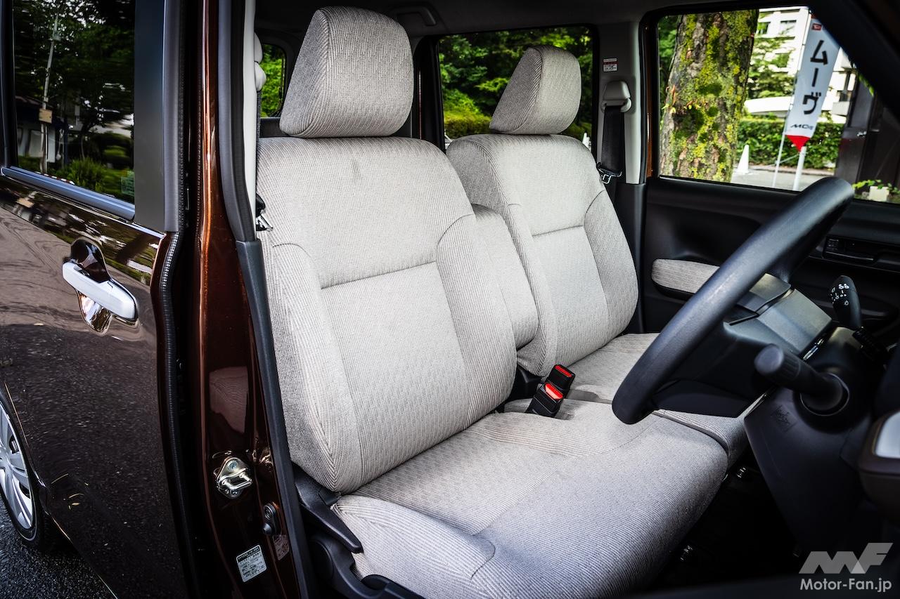 カラーやマテリアルに関しても上質さ、仕立ての良さを意識。G、RSのシートはネイビー色ということになっているが、実はブラウンの糸を織り込んでおり、インパネのブラウン色とのコーディネートを図っている。こだわりはセンターアームレストだ。従来は側面に異なる素材を使っていたそうだが、新型ムーヴではシートと同じ素材をおごった。チラッと目に入ったときの印象が違うそうで、気が利いた仕掛けである。