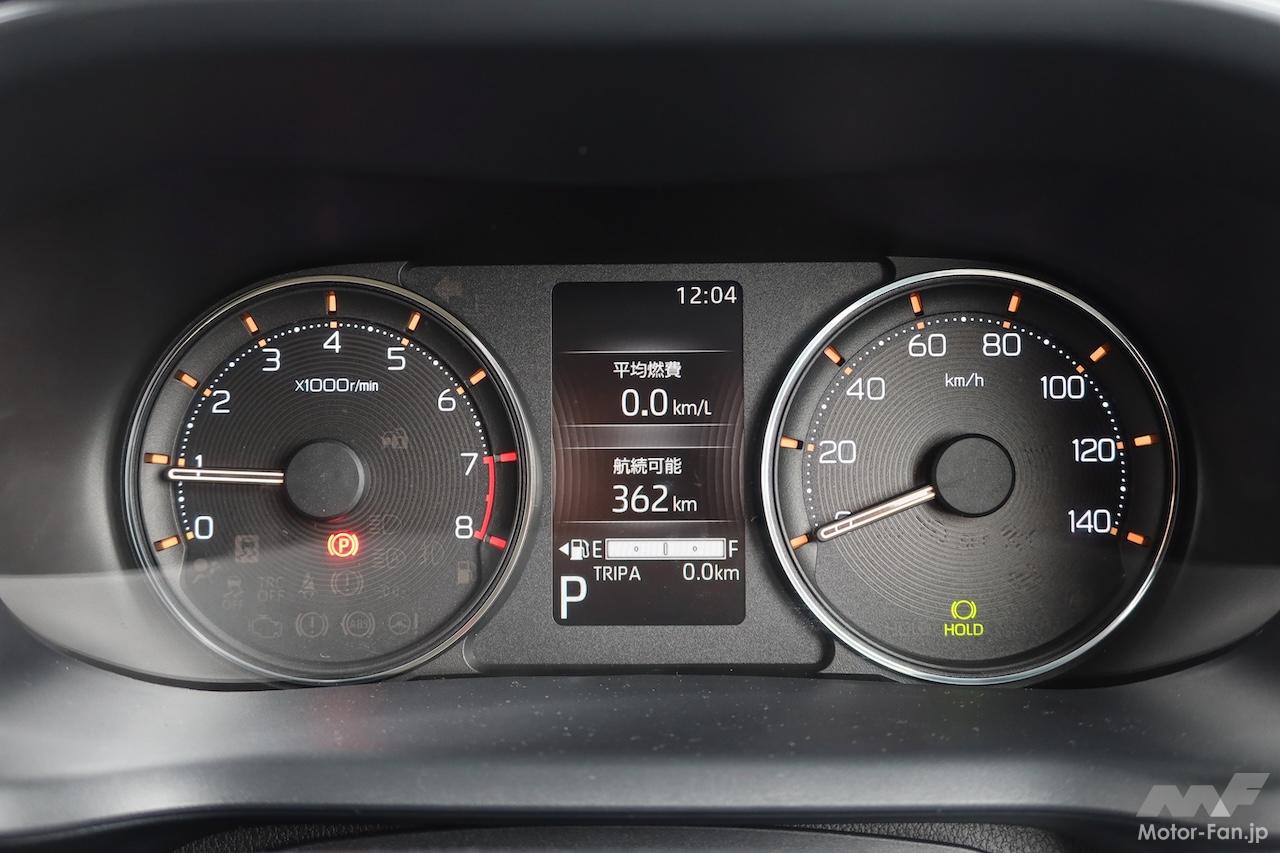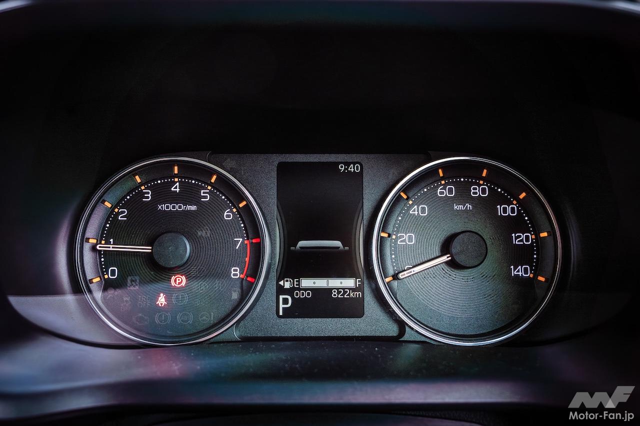 Gは機能をプラスした上級グレードの位置付けで、2WDの価格は171万6000円。パーキングブレーキは足踏み式ではなく電動になり、LEDヘッドランプはオートレベリング付きになり、マルチインフォメーションディスプレイがカラーになるのに加えタコメーターが付き、フルホイールキャップではなくアルミホイールになる。