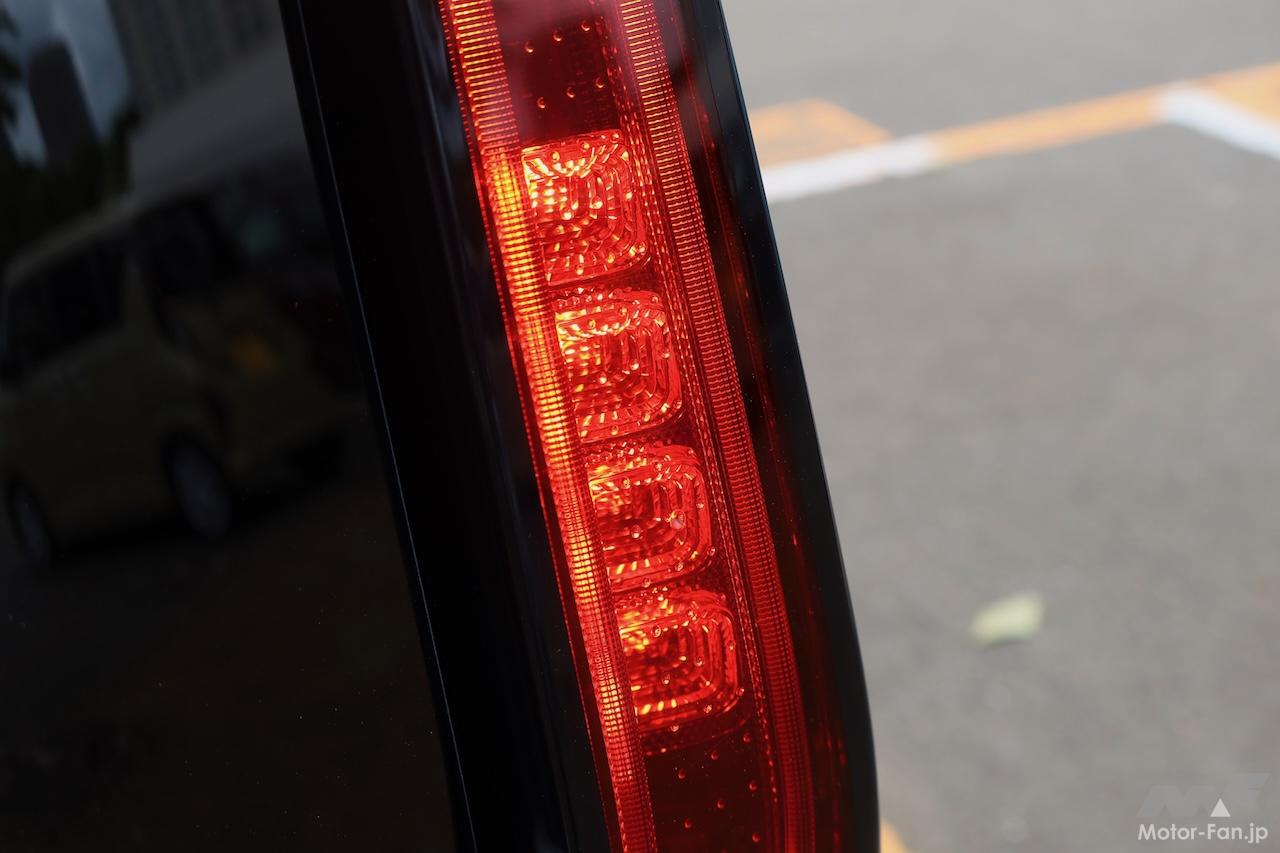 フロントマスクは「男前」を合言葉に、キリッとした端正な顔立ちになるようデザインしたという。縦長のリヤコンビランプは先代から継承。ただ受け継いだだけではなく、ブレーキランプが点灯した際にキラキラ光って上質に見えるような処理を施した。光源はLED(ブレーキ4灯、テール2灯)。上位グレードだけでなく全グレード同一仕様だ。
