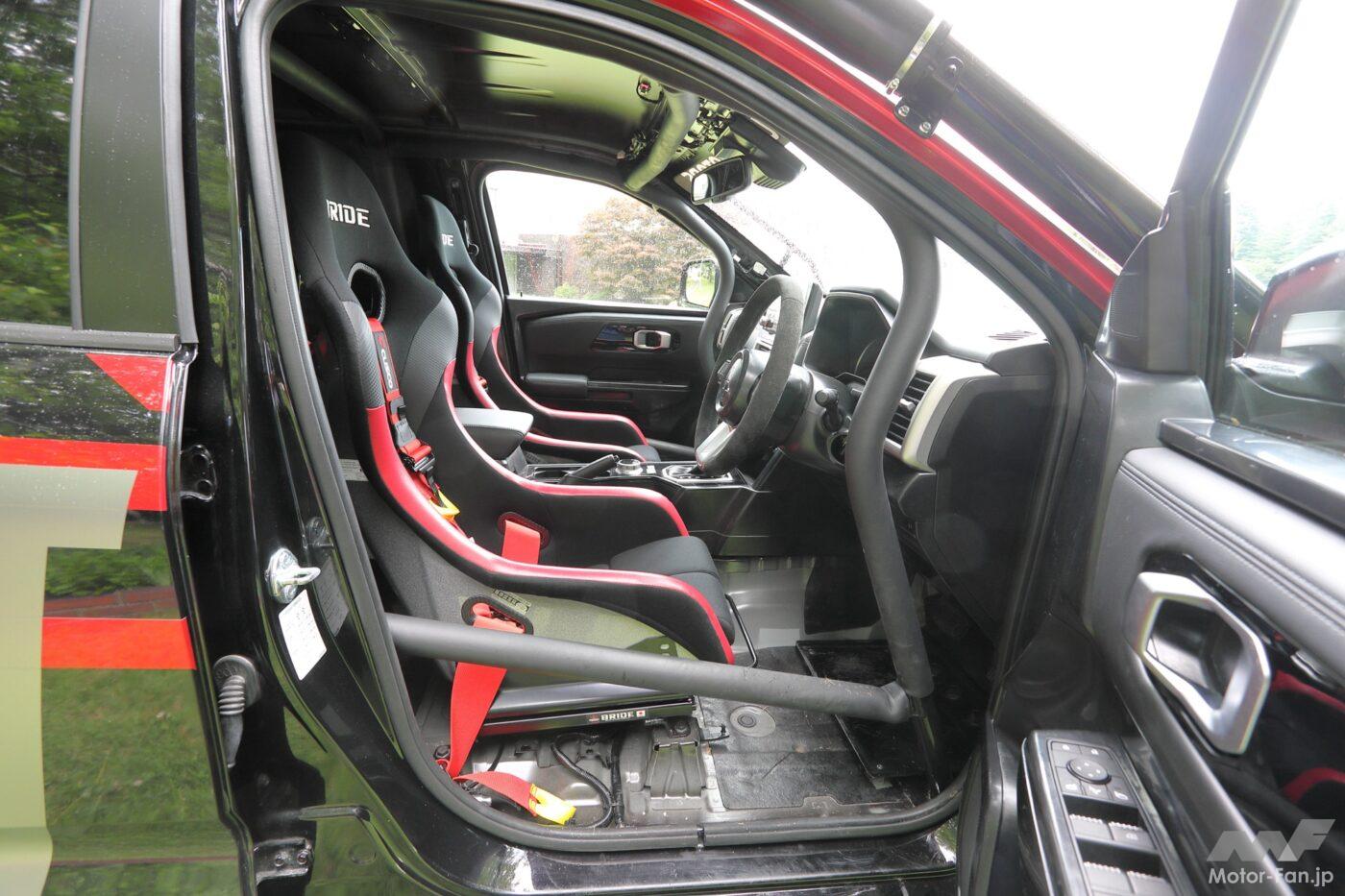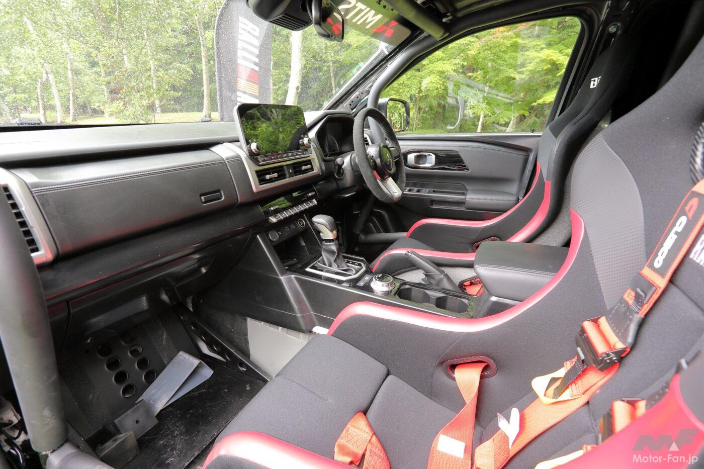 参戦車両はすべて市販仕様のトライトンをベースにしたラリー専用開発車両である。エンジンには4N16型2.4L直列4気筒ディーゼルターボを搭載し、最高出力は160kW以上、最大トルクは500Nm以上に高められている。駆動方式はスーパーセレクト4WD-IIをベースとしたフルタイム4WDで、前後デフにはCUSCO製の競技用機構を採用。足まわりには同じくCUSCO製の専用ダンパーと、横浜ゴムのGEOLANDAR M/T G003タイヤを装着。車体の一部にはカーボンパネルも用いられており、車両全体の軽量化と剛性バランスを最適化、泥濘地や水没区間での走行性を確保するため、エアインテークの位置変更や電子制御の見直しも行われているという。また、6速シーケンシャル変速機に加えて、1台には6速オートマチック仕様も用意されており、ATトランスミッションの耐久性や制御性を競技環境下で検証する目的も含まれている。