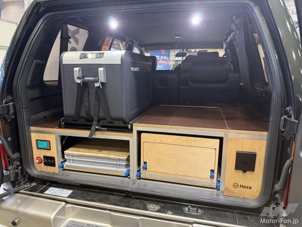 上部には、手持ちの車載冷蔵庫に合わせた引き出しシステムもオプションで付けられる。夜間の積み下ろしで便利なLED室内灯は標準装備となる。
