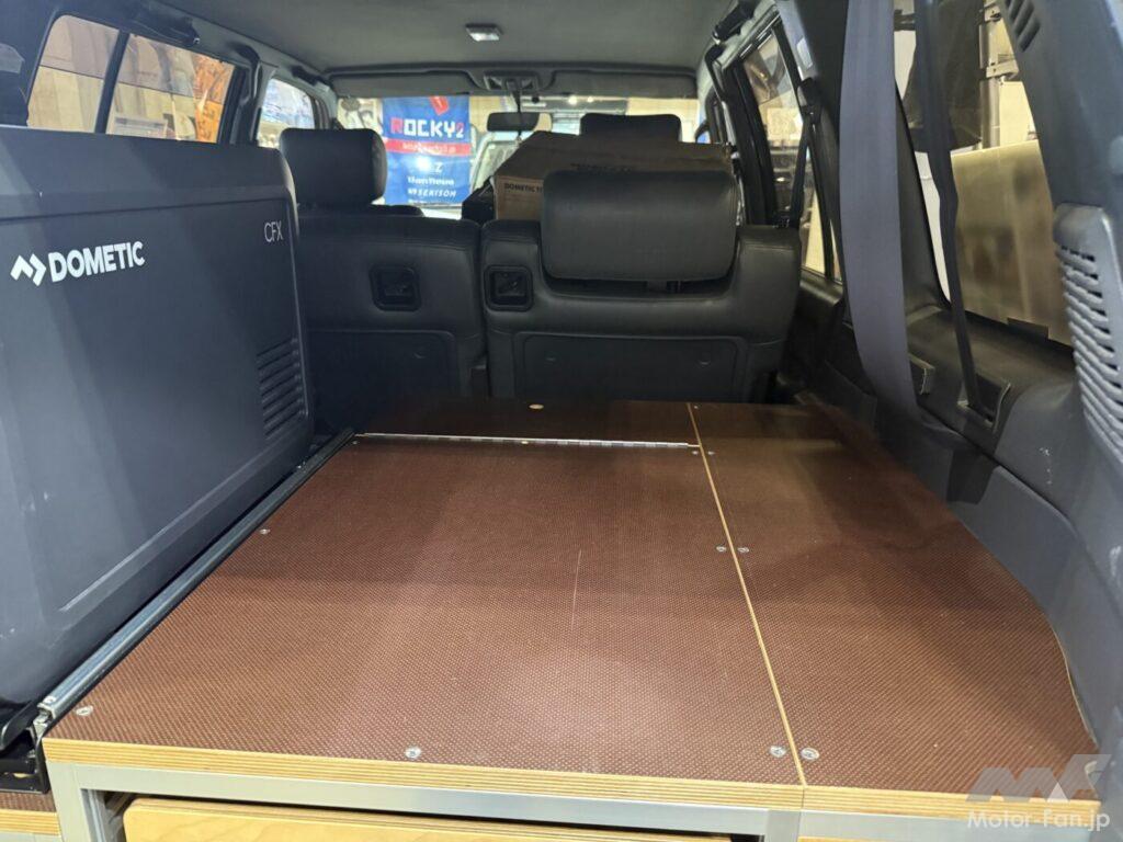 実に魅力的なアイテムだが、「車中泊できるようにベッドにできないの?」と思う人は多いのではないだろうか。こちらについても、もちろん対応可能。セカンドシートまで基台を延長し、さらに左右の高さを揃えてベッドにすることも可能だという(別途料金)。