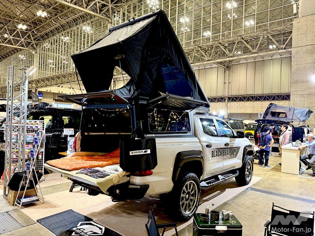 ミニバンやSUVなどの内外装パーツをリリースしてきた「LANBO」がプロデュースした「ブラックベア」がそれ。クロスカントリー用外装部品が中心だが、三菱「トライトン」向けに本格オーバーランド向けパーツもラインナップしている。それが「ピークネストキャノピー」だ。