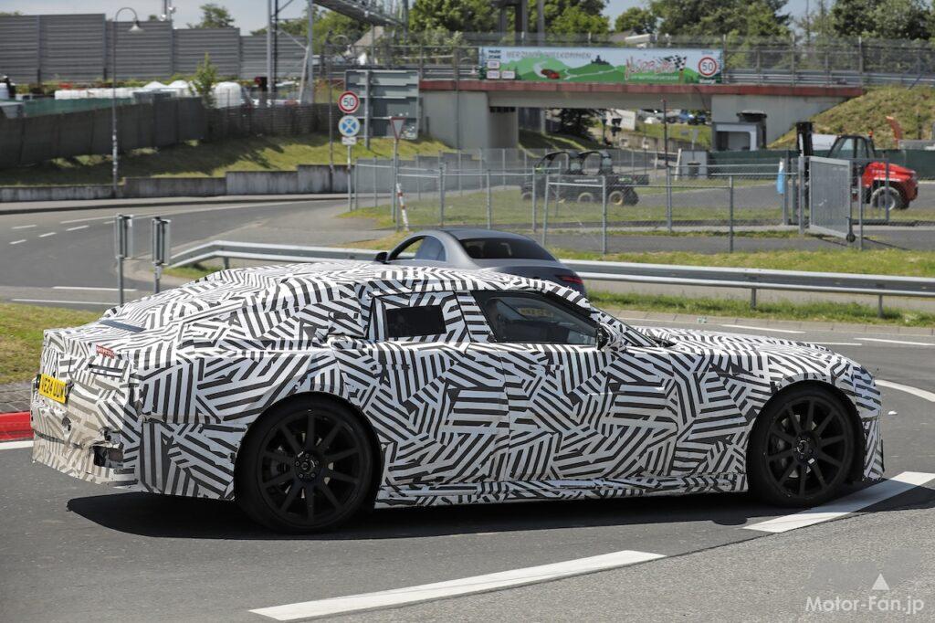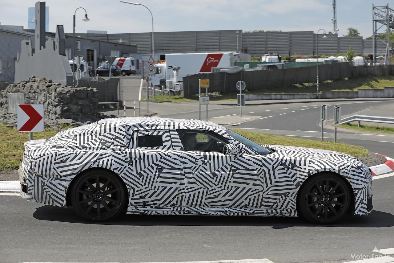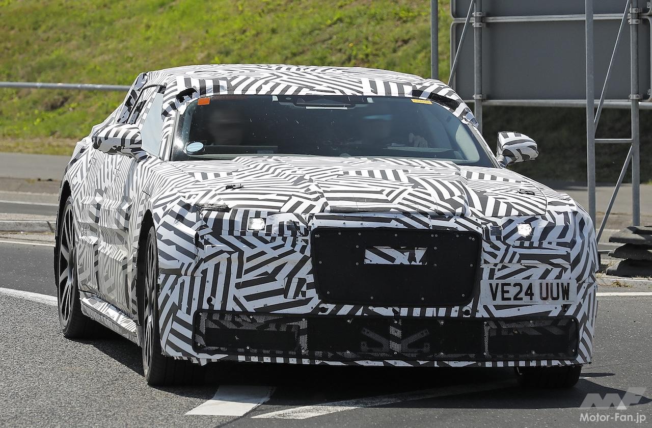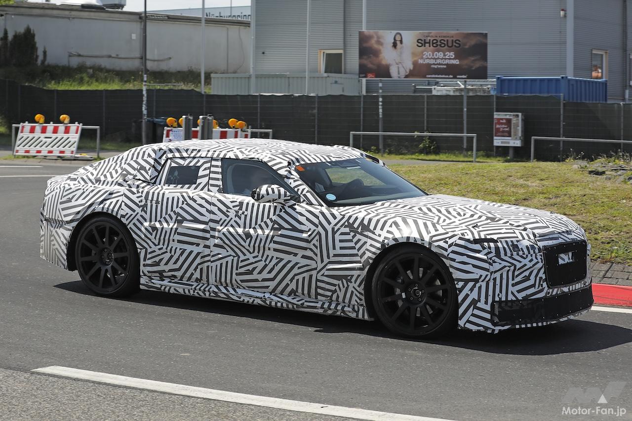 ニュルブルクリンク近郊でテスト中を捉えたプロトタイプは、コンセプトモデルにかなり忠実なようだ。多くのディテールはカモフラージュやパッドで隠されているが、量産モデルは直立したフロントフェイシアと細身のヘッドライトを特徴としている。これらには、3つのセクションに分かれたスポーティな下部インテークが繋がっていることわかる
