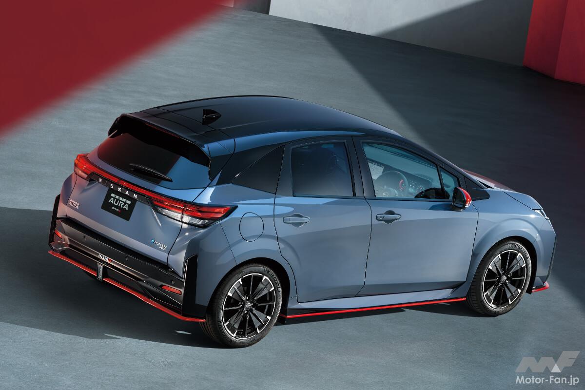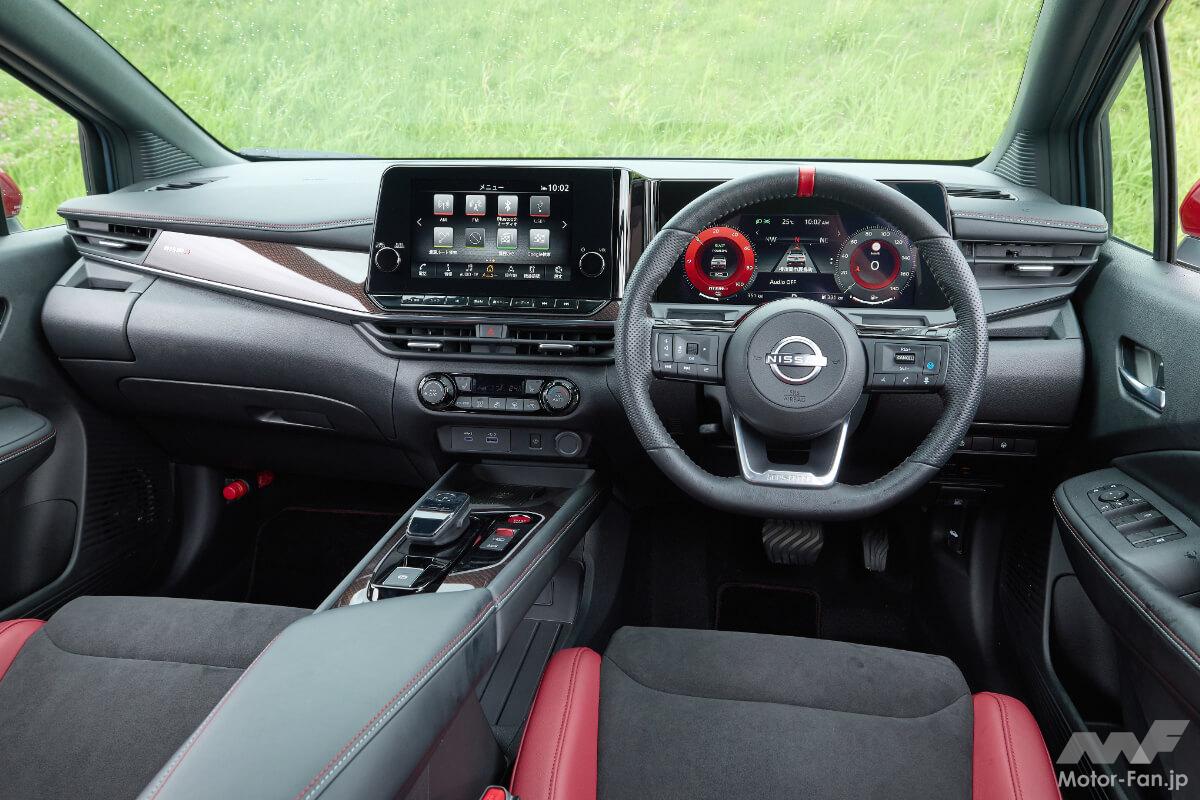 インテリアに関しても、オーラNISMOはレッドの加飾をアクセントとした専用内装となるが基本形状はオーラと共通となる。