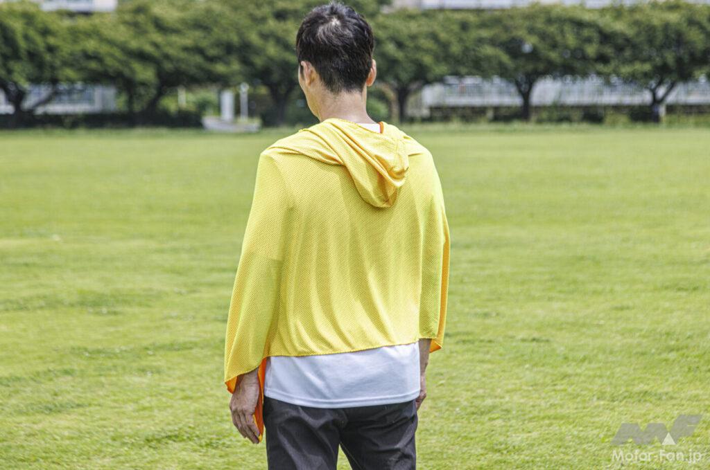 結論として、この冷感ポンチョはバイクの走行時にはまったくの不向き。ただし前述のように、動きの激しいスポーツやハードな仕事以外ならば、様々なシーンで活躍してくれることは間違いないと感じた。