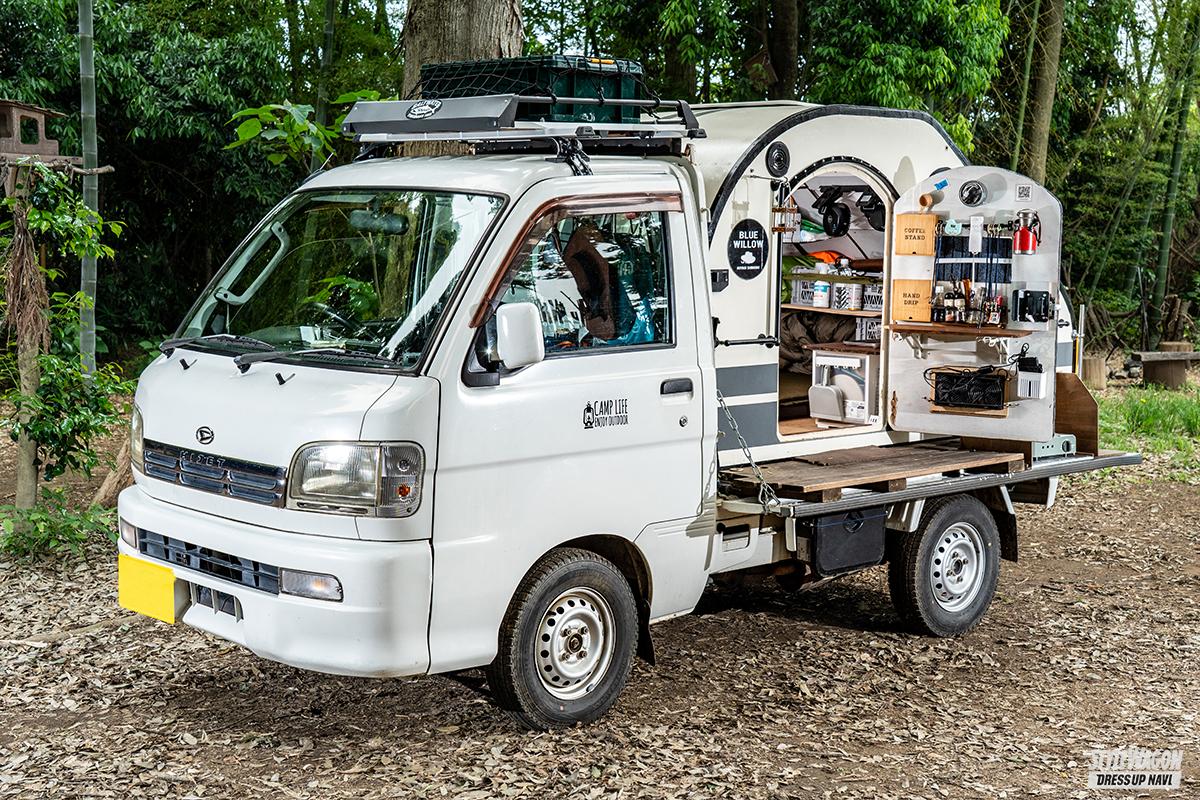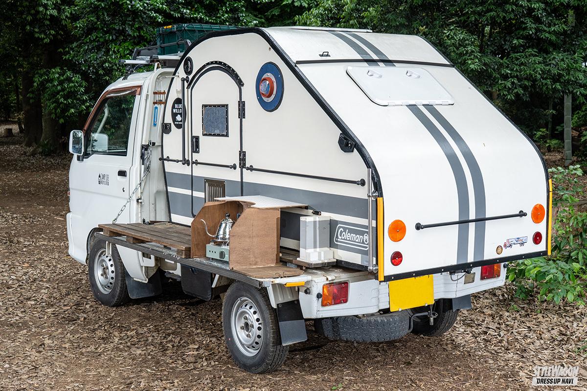 定年でリタイヤした今でこそ悠々自適なキャンパー生活を送っているものの、現役時代はカメラ関連技師としてモノ作りの最前線で活躍したバリバリの高度成長期世代。そんな経歴もあって軽トラの荷台に積む程度のシェルハウスであれば頭の中で設計図が引けるそうで、ミニマムだけど必要にして十二分な機能性を合わせ持つ逸品をカタチ作ってしまった。
