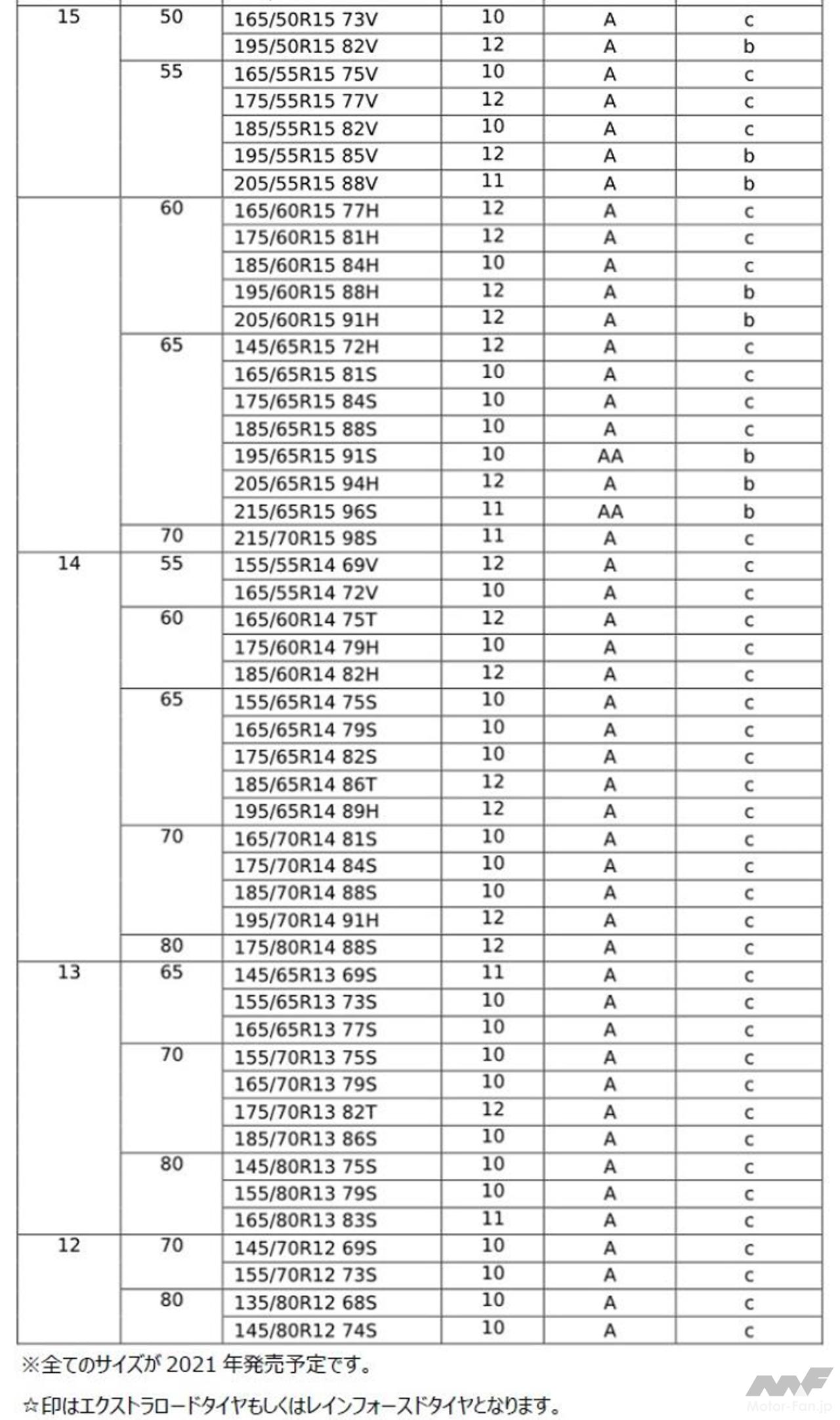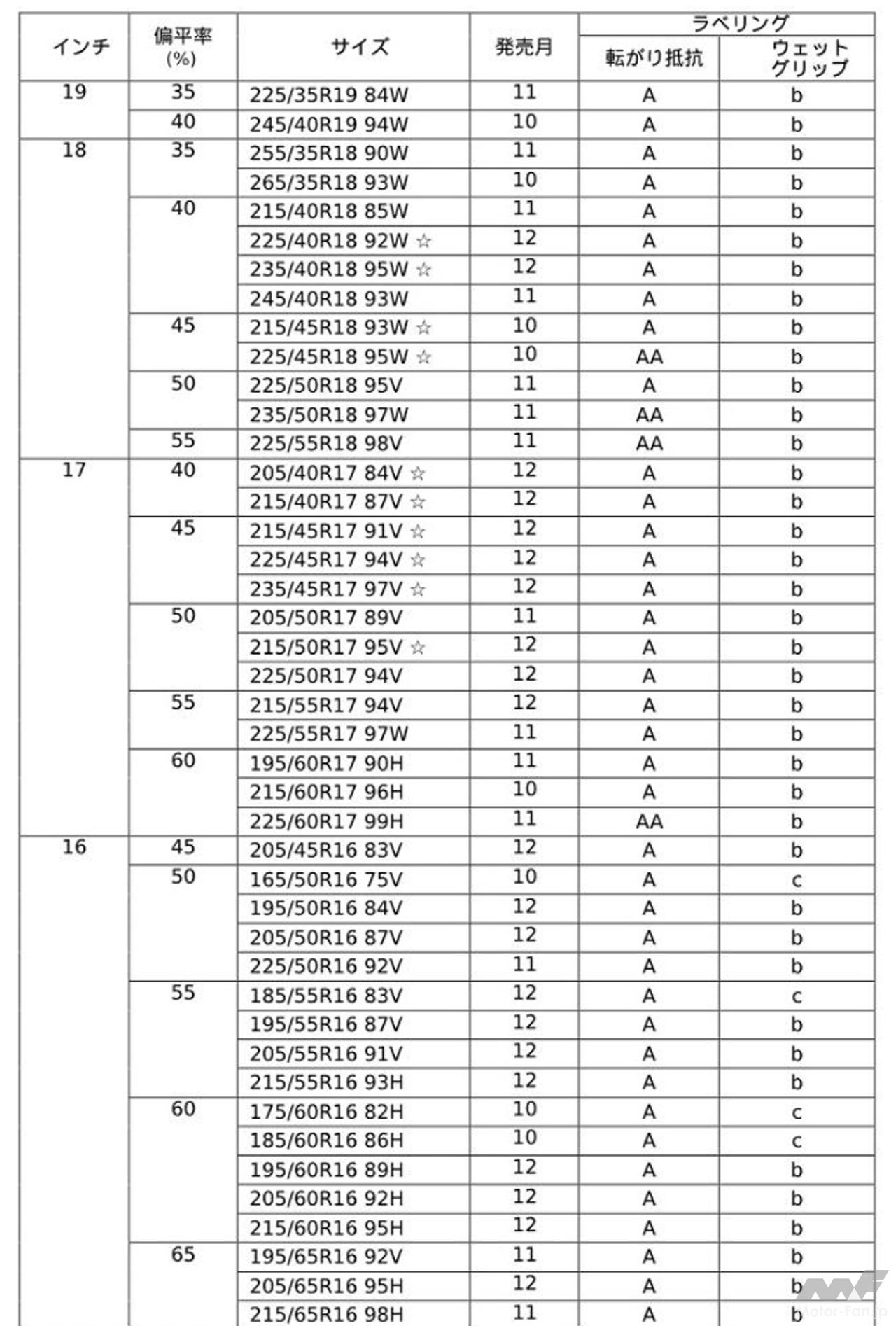 トレッドパターンは「ライトニンググルーブ」や「5ピッチトレッドパターン」などを採用し、優れたウエット性能や耐偏摩耗性能を発揮。見た目にもこだわり、力強さと美しさを併せ持つデザインを実現している。コンパウンドは従来品にも採用した「ナノブレンドゴム」を採用し、優れた低燃費性能に加えて、ウエット性能と耐摩耗性能をバランスよく両立させた。また、最適化した接地形状もウエット性能、耐偏摩耗性能に寄与している。