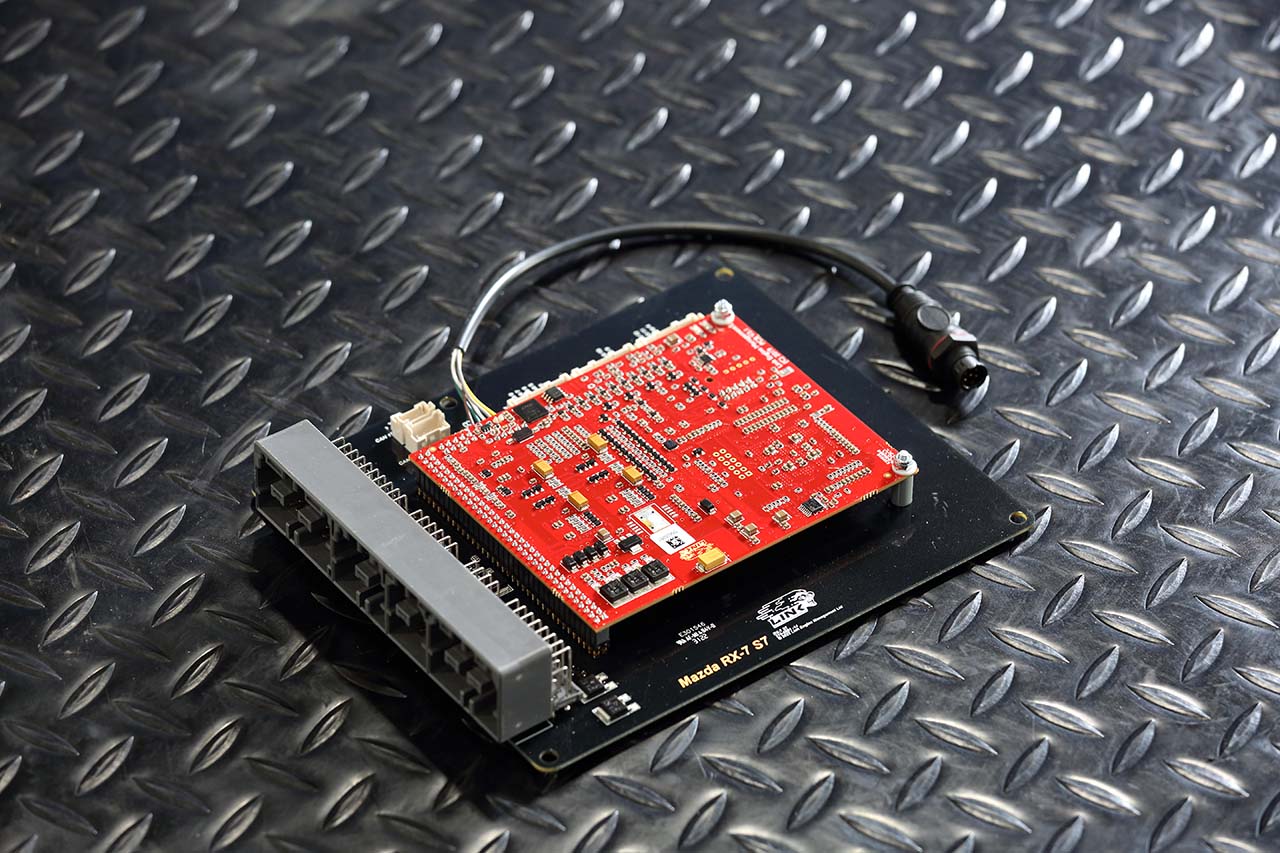 制御にはLINKのプラグインモデルを汎用ケースに収めて使用。専用ハーネスを一から製作する必要があり、この作業だけでも相当な時間を要したという。