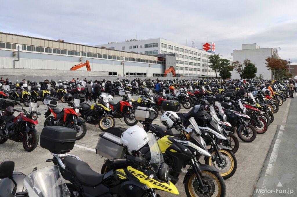 そして、その10年前からスズキが開催しているのが、Vストロームミーティングだ。記念すべき第1回の会場は、スズキ本社の前にあるお客様駐車場で、全国各地から300台を超えるVストロームが集結した。当時のラインナップが1000と650、そして650XTしかなかったことを考えると、これはかなりの台数と言えるだろう。その後、コロナ禍により2020年はグッズ販売のみ、2021年はオンライン配信のみという年もあったが、そうした苦難を乗り越えて、2022年からスズキ本社でのリアルイベントが復活。そして今年も無事に開催される運びとなった。