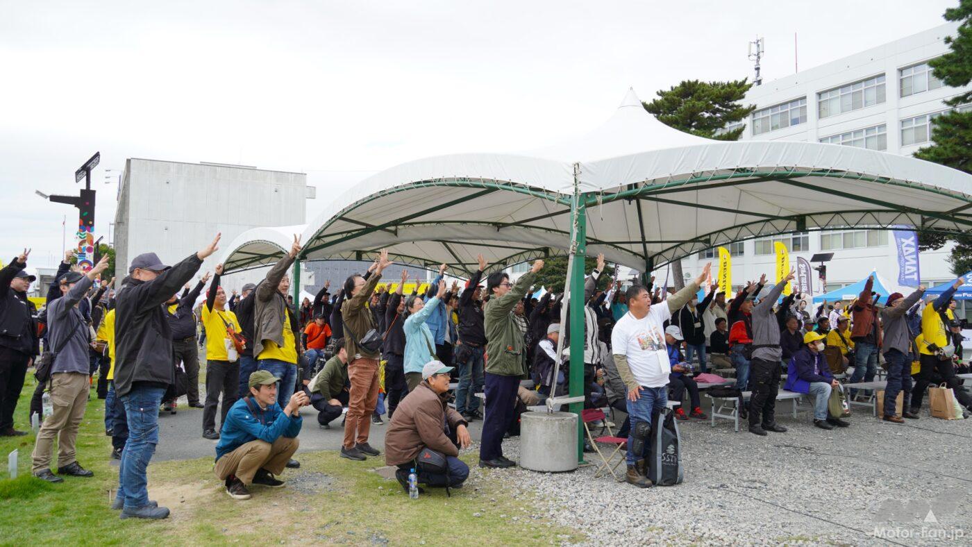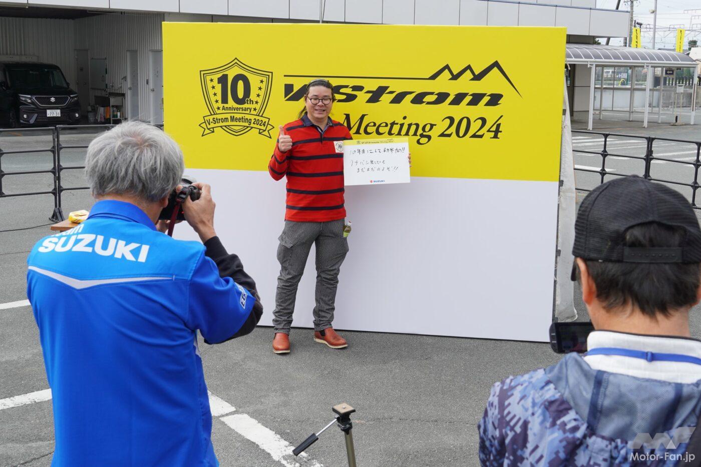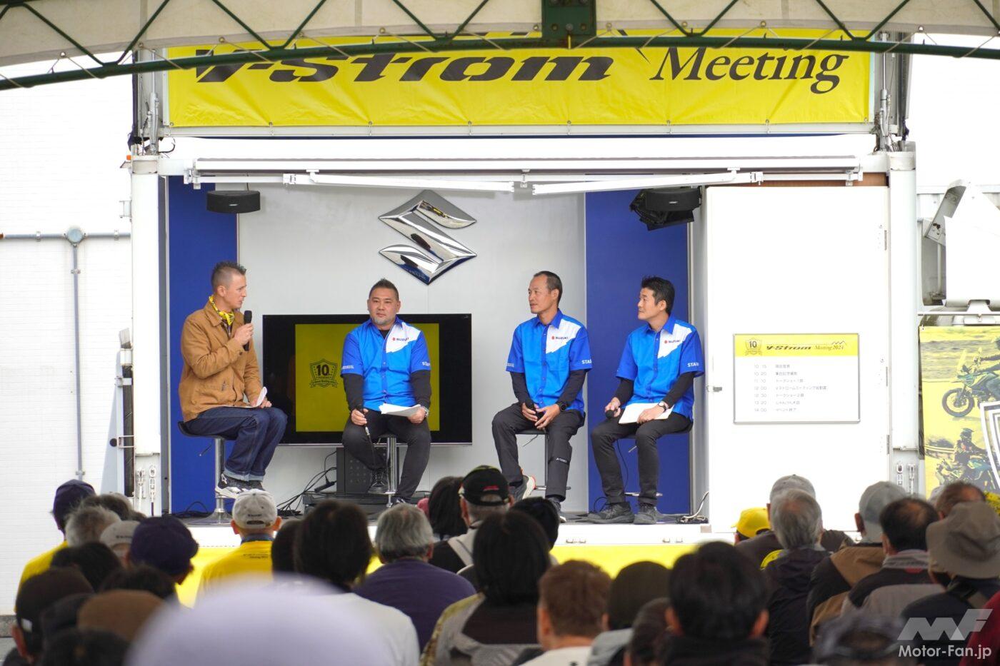 そして、その10年前からスズキが開催しているのが、Vストロームミーティングだ。記念すべき第1回の会場は、スズキ本社の前にあるお客様駐車場で、全国各地から300台を超えるVストロームが集結した。当時のラインナップが1000と650、そして650XTしかなかったことを考えると、これはかなりの台数と言えるだろう。その後、コロナ禍により2020年はグッズ販売のみ、2021年はオンライン配信のみという年もあったが、そうした苦難を乗り越えて、2022年からスズキ本社でのリアルイベントが復活。そして今年も無事に開催される運びとなった。