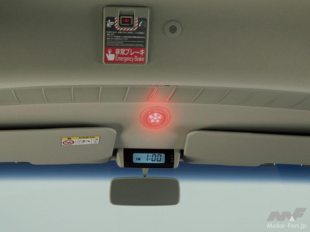 このたびの一部改良では、ドライバーに異常が発生した際、ドライバー自身が非常ブレーキスイッチを押すか、同乗者が非常ブレーキスイッチを押すことで車両が減速して停止するドライバー異常時対応システム(Emergency Driving Stop System)を標準装備。