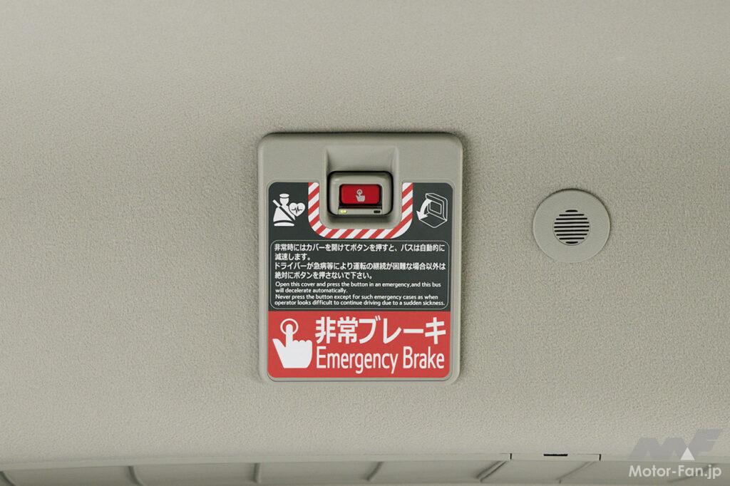 ドライバーに異常が発生した際に、ドライバー自身もしくは同乗者が非常ブレーキスイッチを押すと車両が停止する