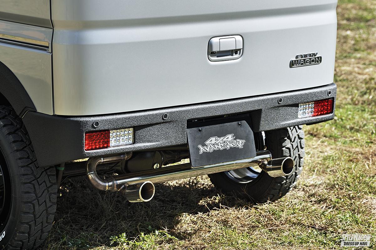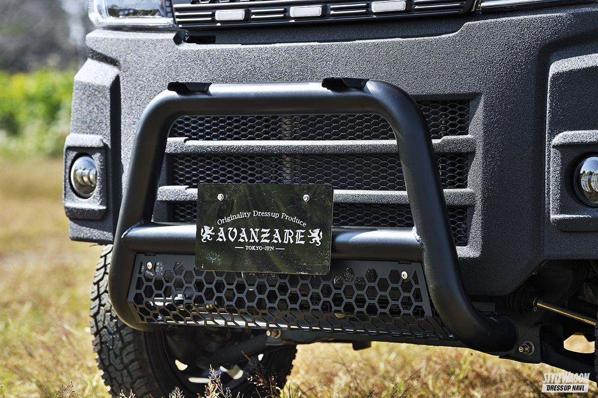17系エブリイには、ショートタイプの前後バンパーを軸に、多彩なアイテムを展開。最大のポイントは、フロントバンパーにあわせるガードが選べるところ。オリジナルのスキッドガードだけでなく、ネクサスジャパンや502ファクトリー製に対応。好みやスタイルにあわせたチョイスが楽しめるというわけだ。