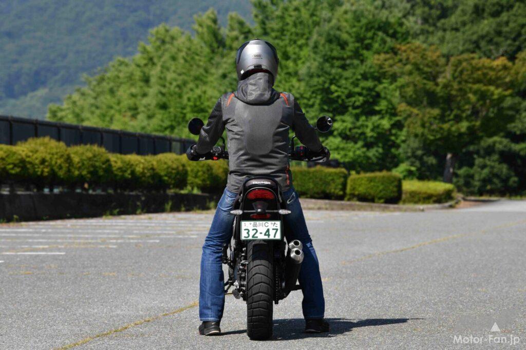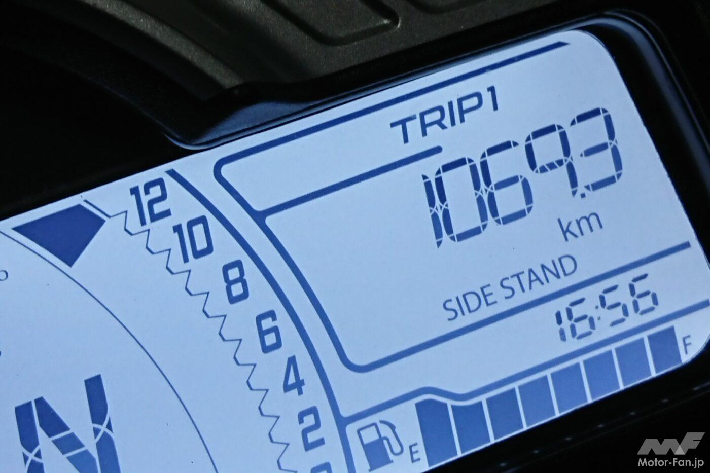 タンデムライディングはなかなか快適。ソロと大差ない感覚で走れたし、パワーに物足りなさを感じる場面はほとんどなかった。以下はタンデムライダーを務めた、富樫カメラマン(身長172cm・体重52kg)の感想。「基本的な印象はかなり良好。シートは面積も肉厚も十分だし、ステップは加減速に対する踏ん張りが利く場所に設置されている。ちょっと残念だったのはグラブバーの形状で、握り心地を考えると、もう少し太いほうがいいかな」