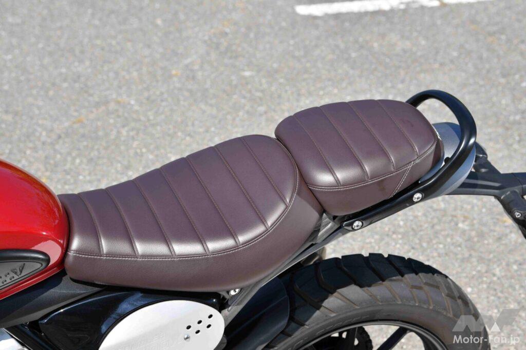 シート高は835mmなので、足つき性は良好とは言い難い。大柄な筆者(身長182cm・体重74kg)は好感触だったけれど、身長が160cm以下のライダーは落ち着かないだろう。この問題はアフターマーケット製のローダウンキット/シートで解決できる……ようだが、足つき性に不安を感じるライダーは、シート高が790mmのスピード400を選択したほうがいいのではないかと思う。