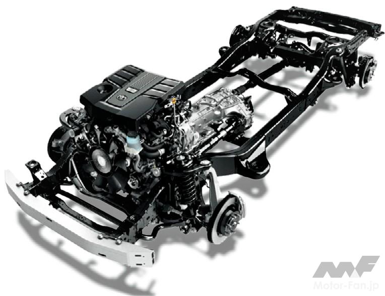 300系が目指したのは「信頼性・耐久性・悪路走破性は進化させつつ継承」し、「世界中のどんな道でも運転しやすく、疲れにくい走りを実現」という2点で、これらを踏まえ、フレーム構造は踏襲しながらもTNGA(Toyota New Global Architecture/トヨタ・ニュー・グローバル・アーキテクチャー=クルマを骨格から変えて、基本性能と商品力を大幅に向上させる考え方)の考えに基づく“GA-Fプラットフォーム”を新たに採用。長年にわたる技術の積み重ねと最新技術を融合し、素性を刷新させています。