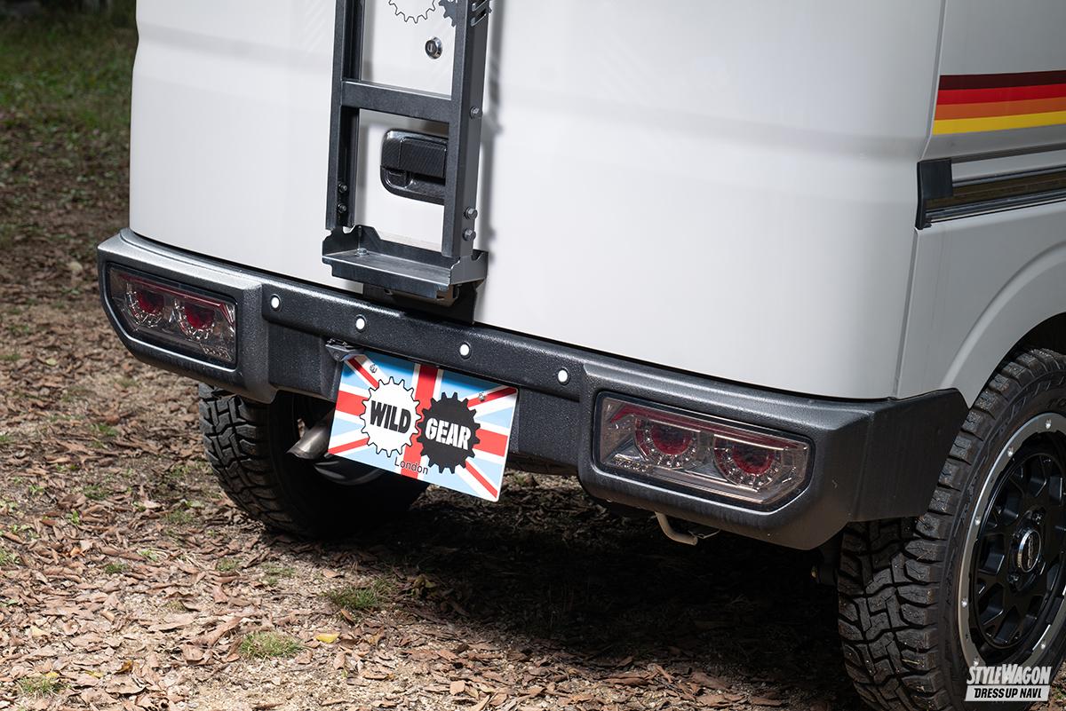 DA17エブリイ用丸目キットでおなじみのワイルドギア。同社が提案するエブリイは、見た目もカッコ良くて、内装もオシャレ。内外装共にトータルにカスタムしたエブリイだ。エクステリアは、オリジナルの前後ショートバンパーを装着し、オリジナル車高調リフトアップキットで約30㎜のリフトアップ。ヘッドライトはオリジナルの丸目キットによって、エブリイがキュートで個性的なマスクに変身している。この丸目キットは、純正ヘッドライトと交換装着するもので、丸目ヘッドライトを装着するためのパネル部分が製品。ヘッドライト本体は別売りとなり、自分で好みのものを装着することができる。