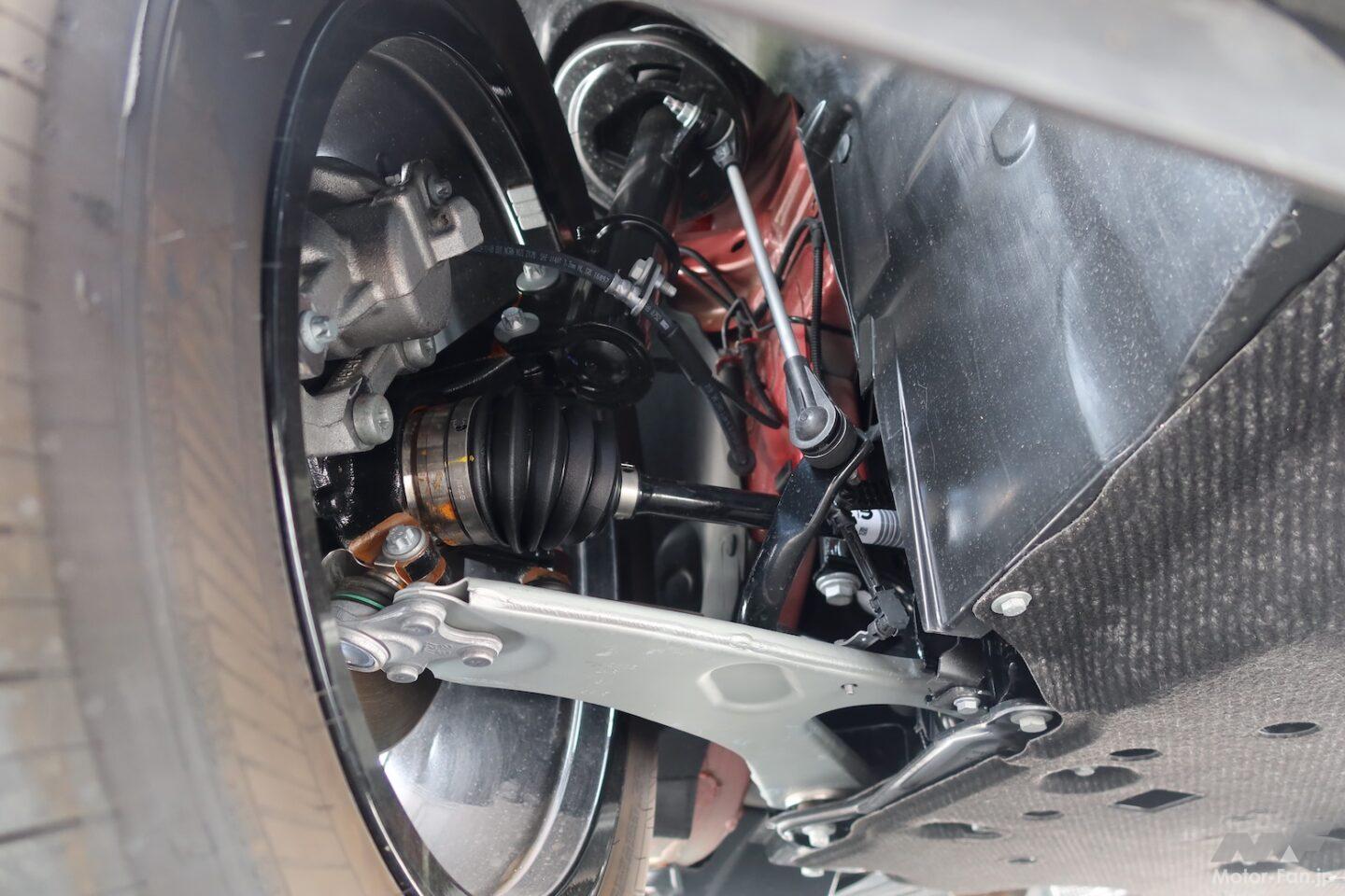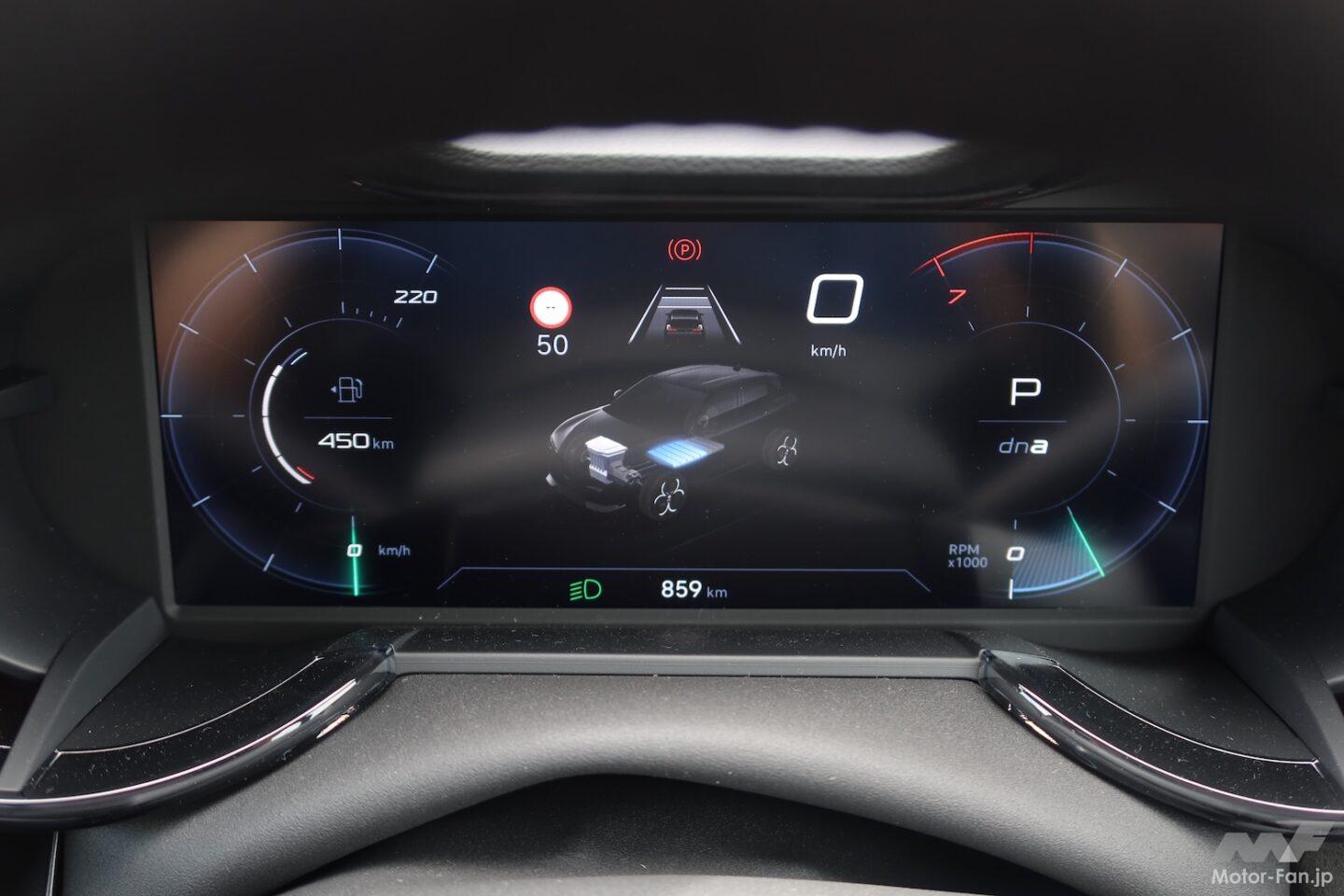 6速DCTは48V駆動のモーターを内蔵。最高出力は16kW、最大トルクは51Nmである。ベルトスタータージェネレーター(BSG)も備えており、こちらも48V駆動だ。床下に搭載する水冷式のリチウムイオンバッテリーは総電力量が約0.9kWhもあり、たっぷりした数字からは、モーターの出番がなかなか多そうなことが推察できる。