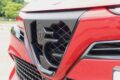 試乗車はイブリダだった。それも、ジュニアの日本発売を記念した限定車、ジュニア・イブリダ・スペチアーレである。ベース車との外観上の大きな違いは、アルファロメオの象徴であるスクデット(盾グリル)がBEVと同じプログレッソデザインになること。赤十字と、人間をくわえた大蛇を組み合わせたアルファロメオのエンブレムを透かし彫りにしたものだ。ベースのイブリダはメッシュのグリルに筆記体でAlfaRomeoの文字が配される。