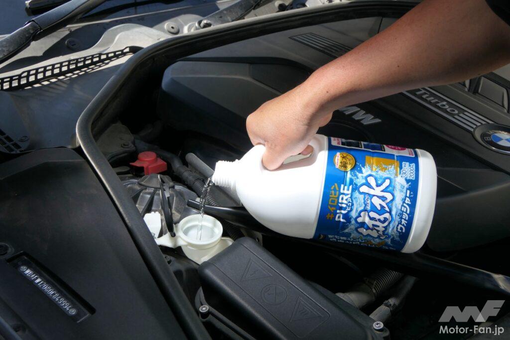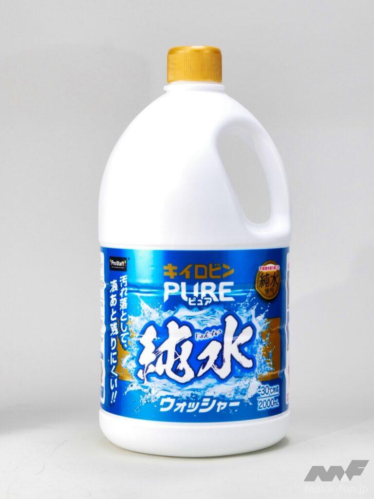 最近では撥水効果があるウォッシャー液や油膜除去に特化したものなど色々あるが、最旬トレンドとなっているのが純水仕様。不純物を含まないため、ウィンドウやボディに飛び散ったウォッシャー液が乾いても水シミにならない。だから洗車後でも気兼ねなくウォッシャー液を使える。