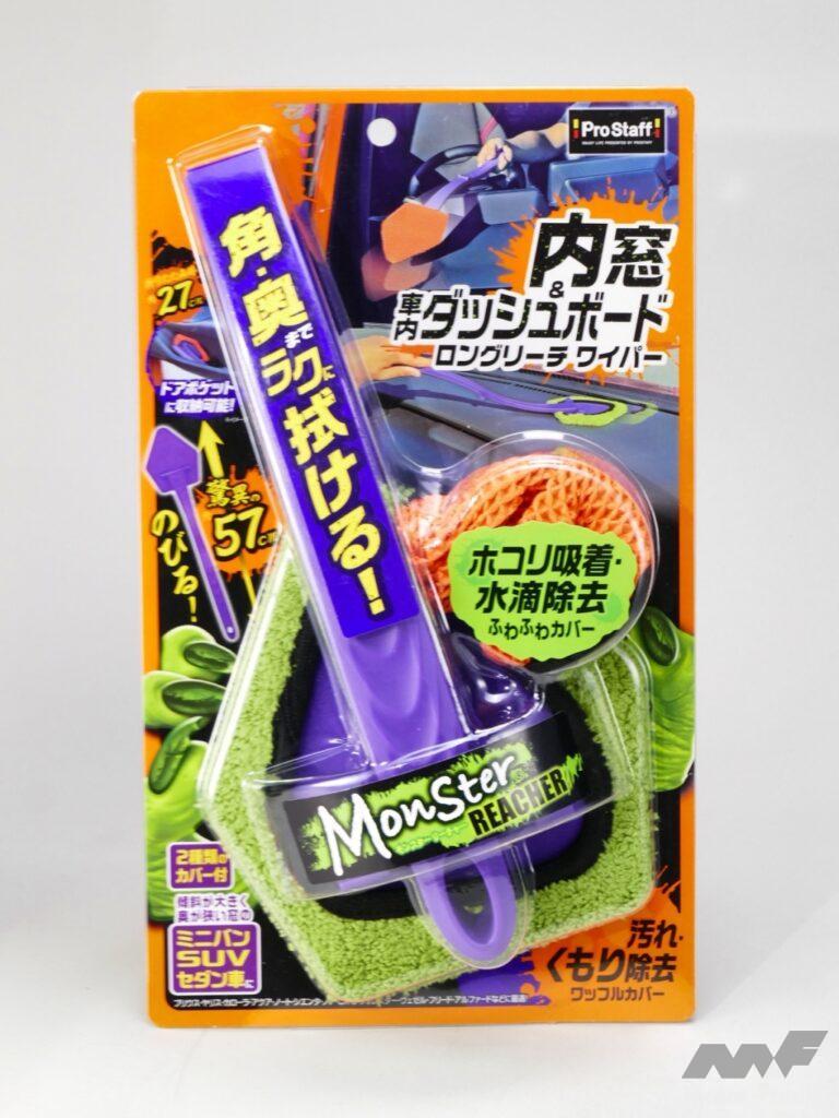 プロスタッフの『モンスター リーチャー』は、そんな内窓掃除をラクにしてくれる救世主ともいえる。ワイパーアームは全長57cmロング仕様となっておりダッシュボードの奥までアプローチできる。