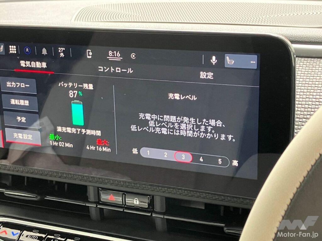 レベル1は、5.5kWh相当を充電するのに3時間以上かかることになる。単純計算すると、1.8kW程度の普通充電を想定したレベルといえる。同様に計算すると、筆者が自宅で使っている6kW普通充電の性能を引き出すには、レベル4以上に設定しておくべきと理解できる。