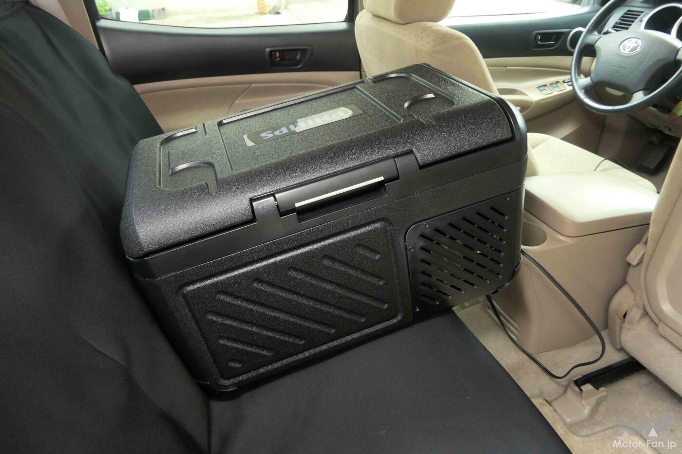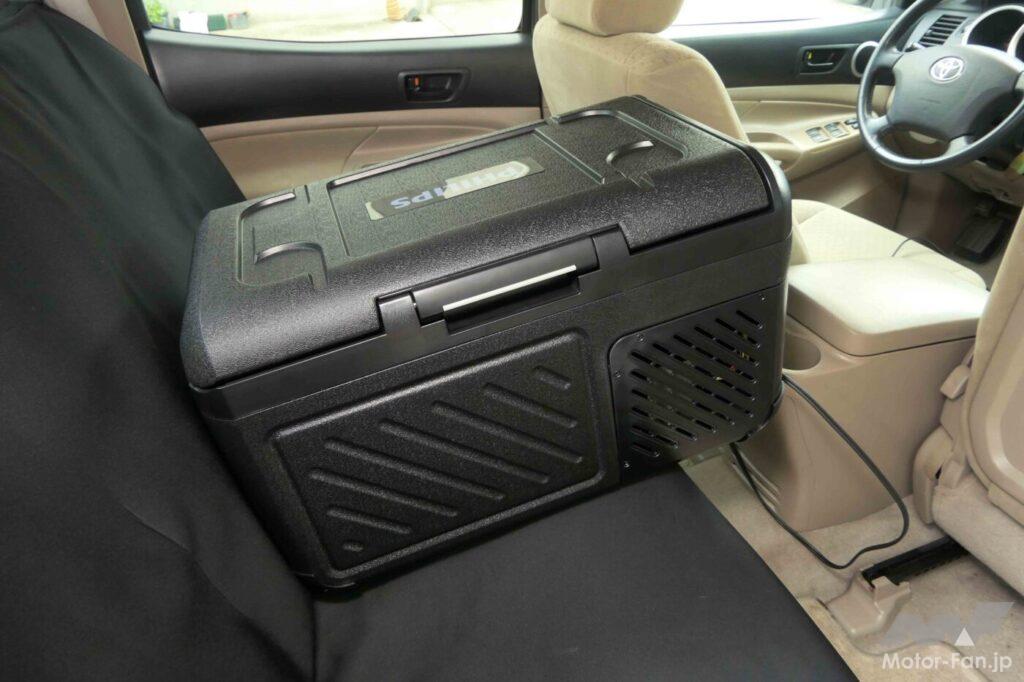 もちろん、レジャーシーンでもこの冷却性能は大活躍。ドリンクを冷やしておくのはもちろん、食材を保管しておけば次の日の朝も鮮度をキープしておける。また、100Vに対応する電源ケーブルの情報も開示されているため、適合するケーブルを入手すれば、電源が用意されているキャンプ場で引き続き冷蔵できるのだ。