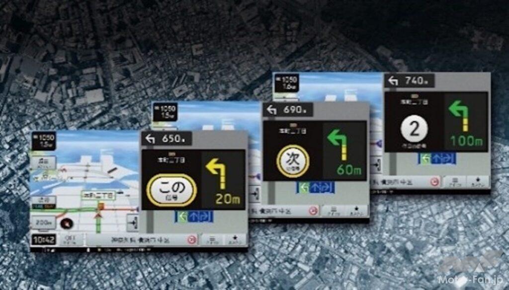 ナビゲーションも利便性は高く、曲がる交差点までの信号の数をカウントダウンしながら案内する。またVICSによる現在の渋滞情報、VICS WIDEの統計情報に加えて、スマートループ渋滞情報により最適な経路を提案する。このスマートループ渋滞情報とはユーザーの走行状態をリアルタイムに収集した渋滞情報で、VICSに対応していない情報まで接続できる。より最適なルート誘導が可能になるものだ。