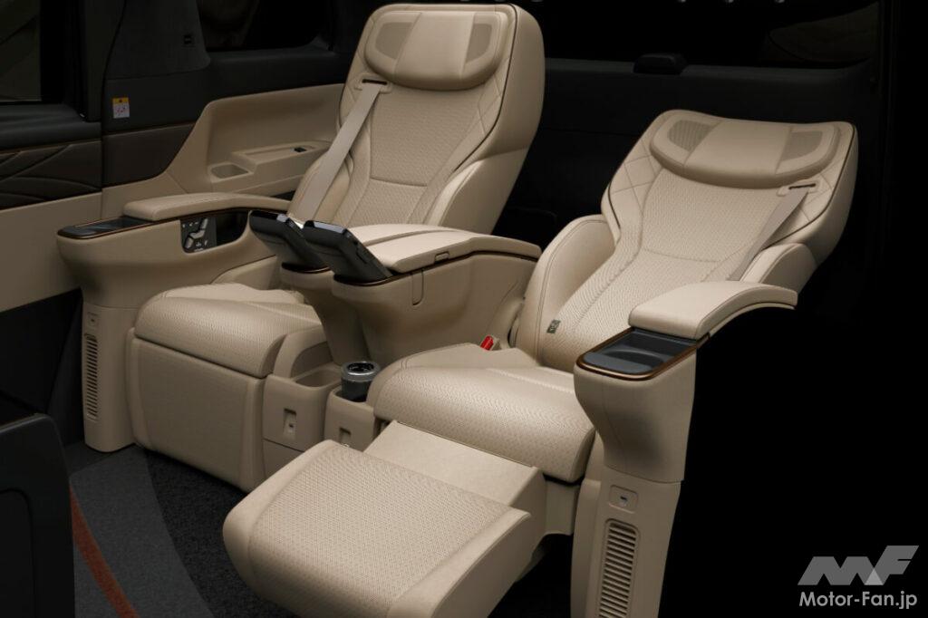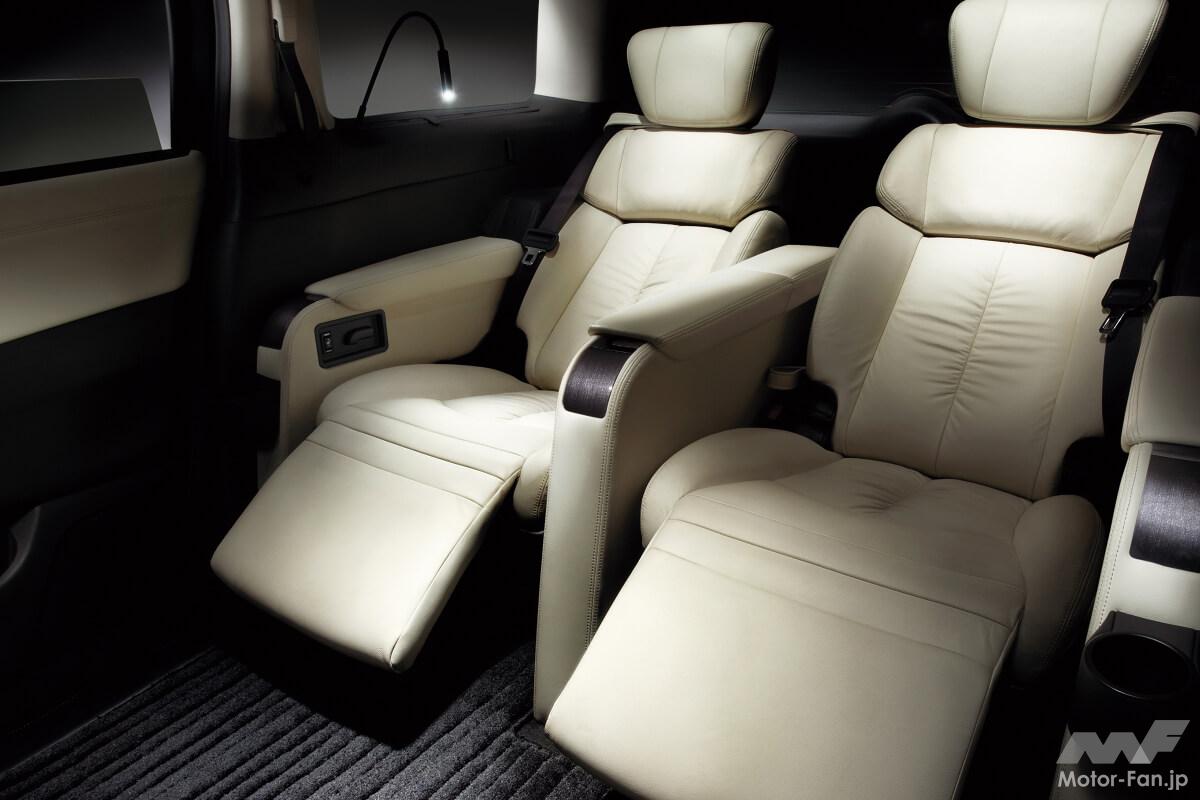 とくにスペーシャスラウンジは、ベンチレーションやマッサージ機能なども備わる標準のエグゼクティブシートをさらに上質かつ高機能化しており、カーペットや天井の内張りも専用品に交換され、さらなる質感の向上が図られている。