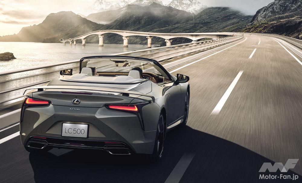 LC500 Convertible“PINNACLE”は、初採用の専用固定式リヤウイングにより、オープン時の乗り心地や直進安定性・操縦安定性をより一層高めてある。