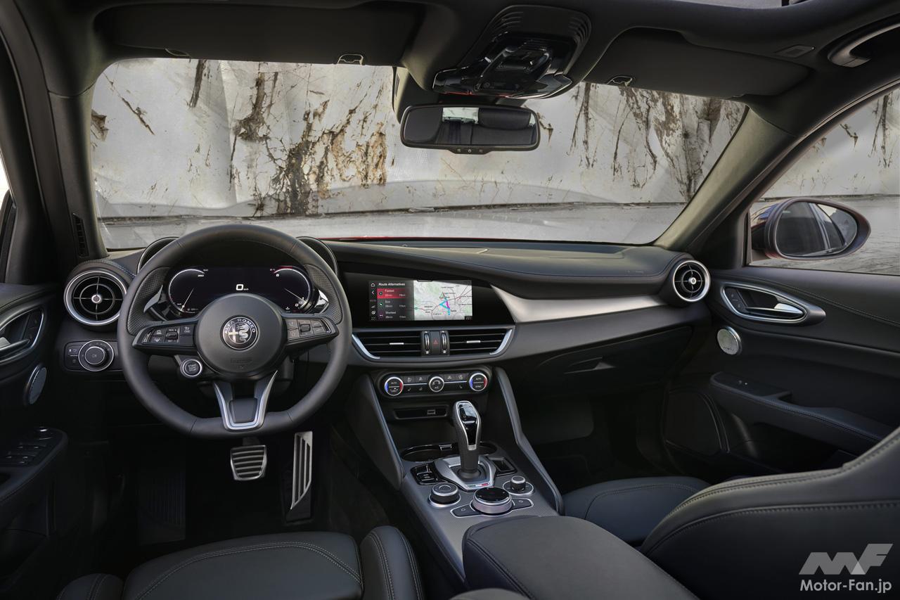 パワートレインは既存の「ヴェローチェ(税込725万円)」同様、280ps/400Nmを発する2.0L直列4気筒ガソリンターボエンジンを搭載。アルファロメオ専用設計のALFATM LINK サスペンションシステムやカーボンプロペラシャフトを備え、スポーティな走行性能と快適な乗り心地を実現している。