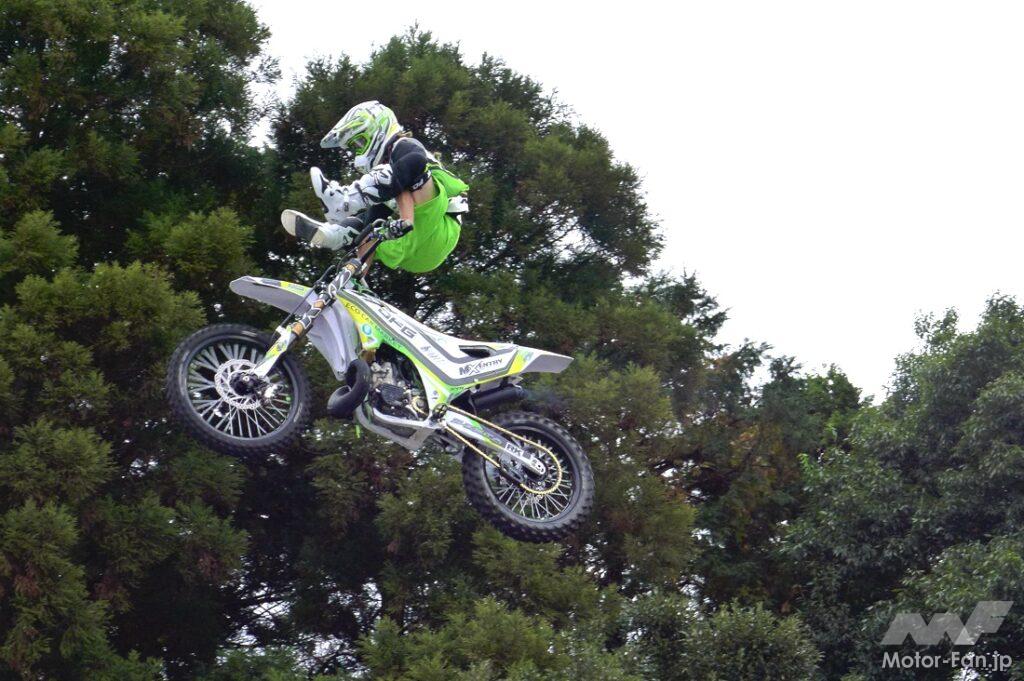 そんな充実したイベントプログラムの中で、いちばんの盛り上がりを見せていたのは、やはりFMXのパフォーマンスだろう。ジャンプ台から見上げるほど高く飛び立ったライダーたちはバイクを自由自在に操り、「ワンハンダー」や「ノーハンダー」と呼ばれるハンドルバーから手を離したり、「ウィップ」と呼ばれる空中でバイクを横倒しするパフォーマンスを繰り出したあと、大技の回転技を連発。トリは4台トレインによるジャンプパフォーマンスという驚異のトリックを披露する。驚異のトリックの連続集まった観客全員の目が釘付け。極限のスリルと感動に会場は万雷の拍手で沸いた。