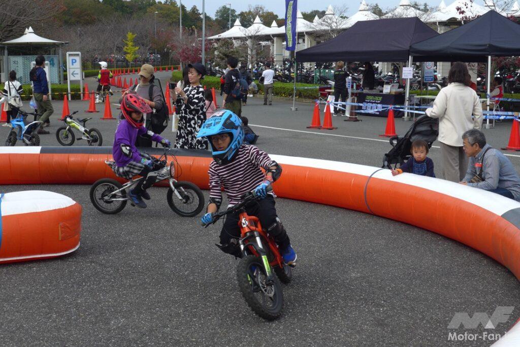 このイベントは誰もが楽しめるコンテンツが盛り沢山。今回は2年ぶりに復活したフリースタイルモトクロス(FMX)をはじめ、オフロード体験走行やトライアルバイク体験、オフロードモデル試乗会、身体に障害を持つ人向けのパラモトライダー体験走行会、電動キッズバイク体験などの体感型アトラクションや、ヨーヨー釣りやスーパーボールすくいが楽しめるキッズ向けの縁日コーナー、BDSバイクセンサー掲載の優良バイクショップやパーツ・アパレル用品メーカーによる展示即売会などが行われた。